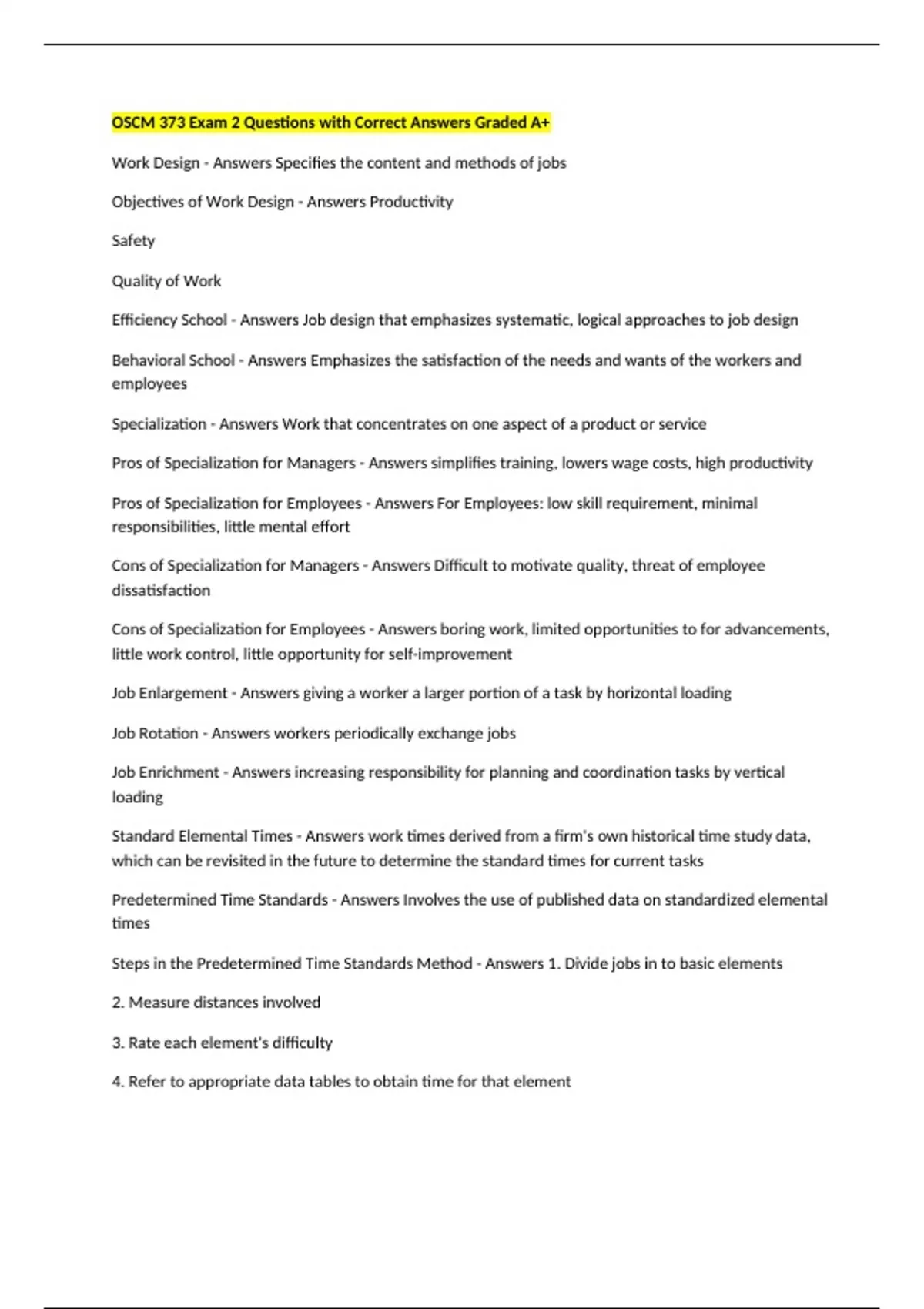OSCM 373 BUNDLED QUESTIONS ANSWERED CORRECTLY LATEST UPDATE 2026/2027