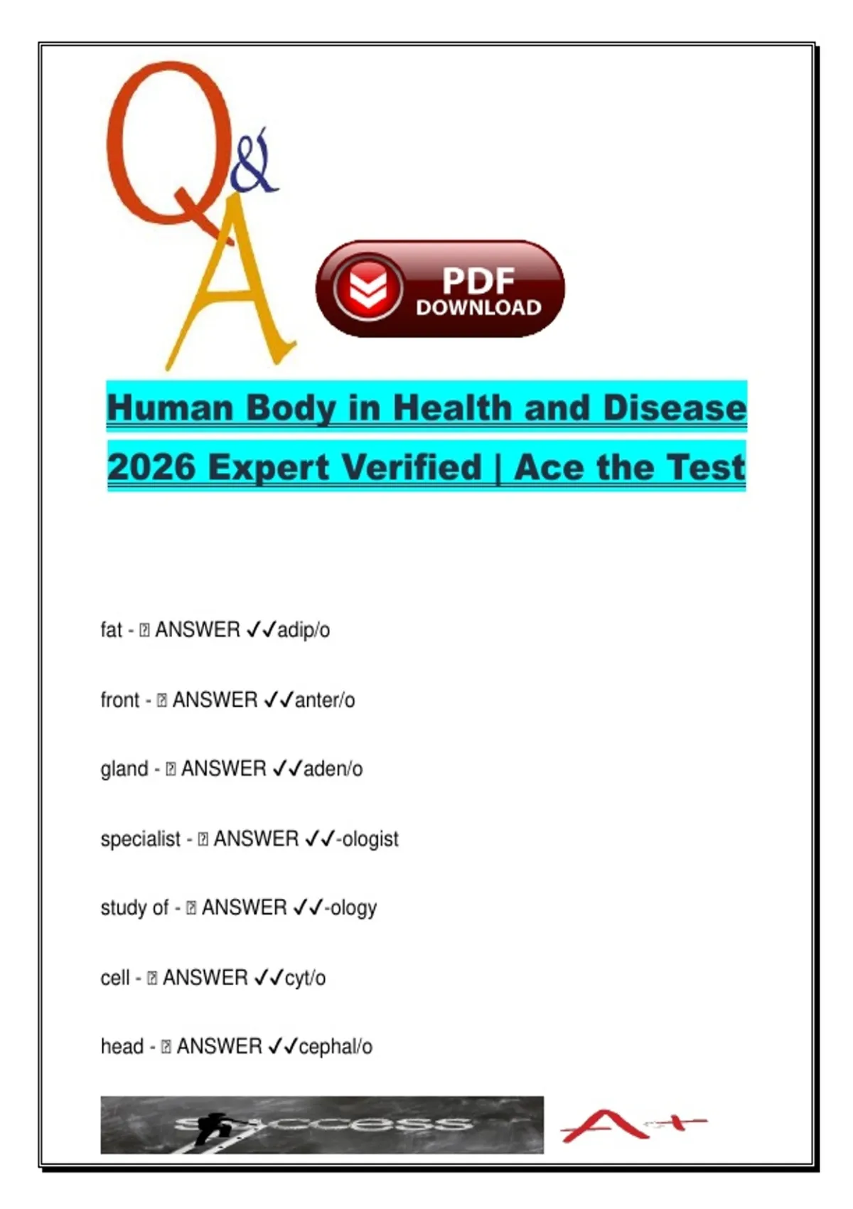 HUMAN BODY IN HEALTH AND DISEASE EXAM COMPLETE PACKAGE DEAL