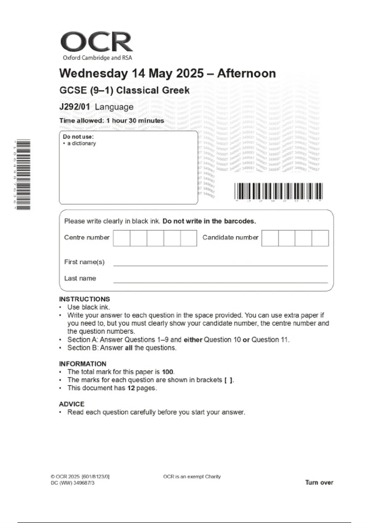 2025 OCR GCSE (9–1) Classical Greek J292/06 Literature and Culture Combined Question Paper & Final Marking Scheme 4 Exam (elaborations) 2025 OCR GCSE (9–1) Classical Greek J292/05 Verse Literature B Combined Question Paper & Final Marking Scheme 5 Exam (elaborations) 2025 OCR GCSE (9–1) Classical Greek J292/03 Prose Literature B Combined Question