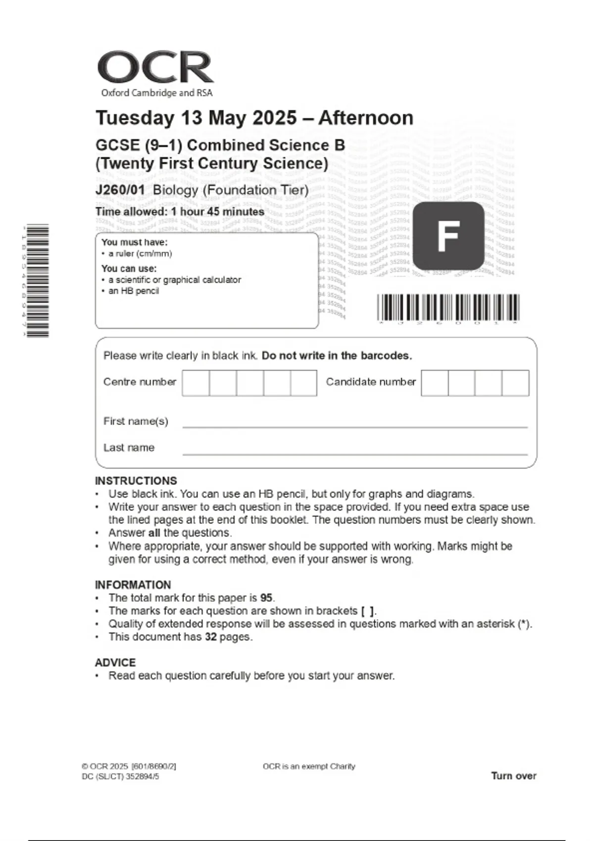 Exam (elaborations) 2025 OCR GCSE (9–1) Combined Science B (Twenty First Century Science) J260/02 Chemistry (Foundation Tier) Combined Question Paper & Final Marking Scheme 3 Exam (elaborations) 2025 OCR GCSE (9–1) in Combined Science B (Twenty First Century Science) J260/03 Physics (Foundation Tier) Combined Question Paper & Final Marking Scheme