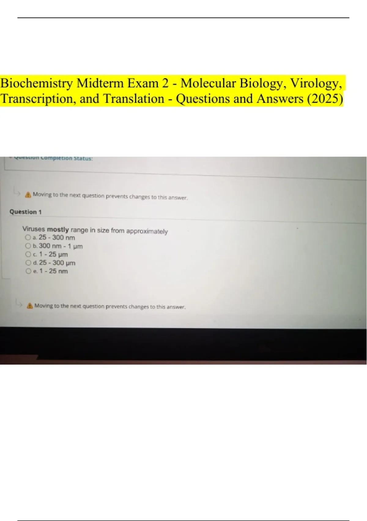 Biochemistry Midterm Exam 2 - Molecular Biology, Virology, Transcription, and Translation - Questions and Answers (2025)