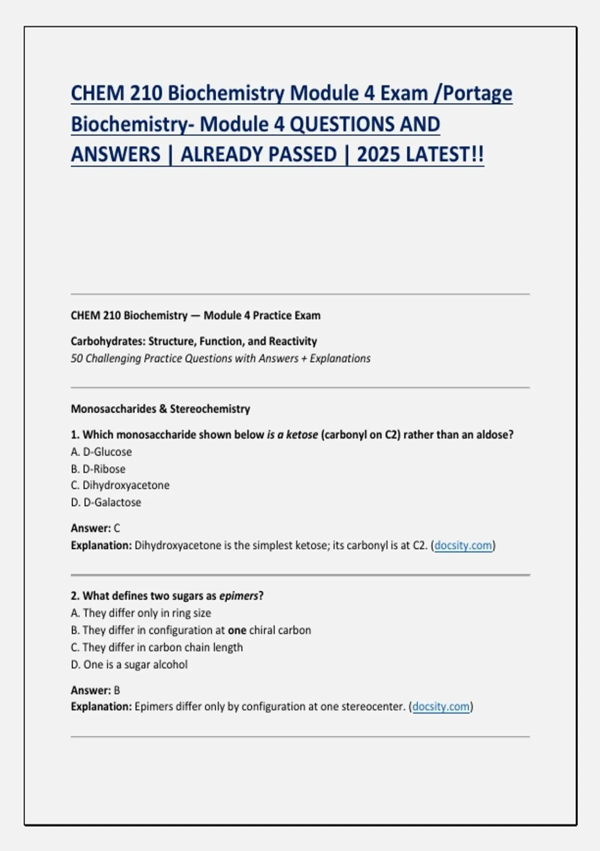 Chem 210 Biochemistry Final Exam Preparation Newest With Complete 100 Questions And Correct Detailed Answers| Brand New Version!