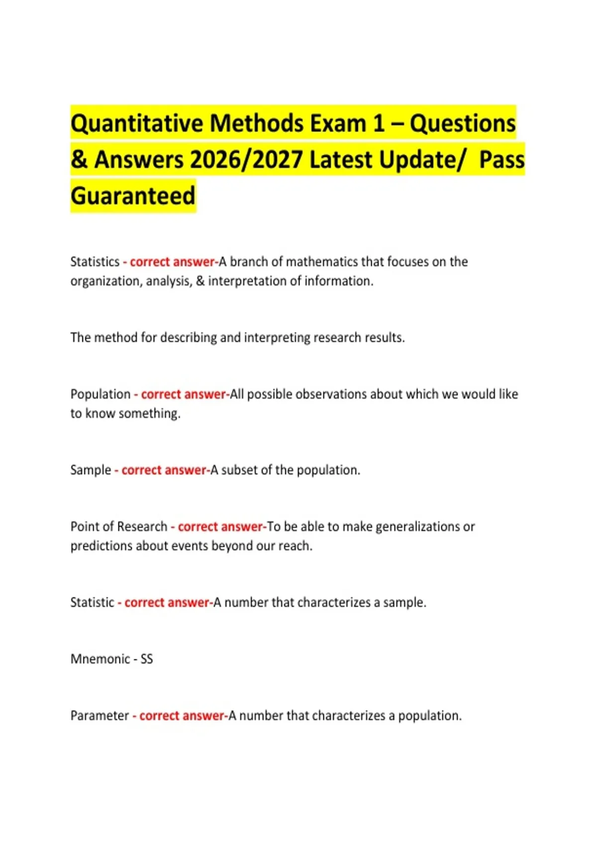 Quantitative Research Exam Bundle | Practice Exams, Study Guides & Verified Answers (2026–2027)