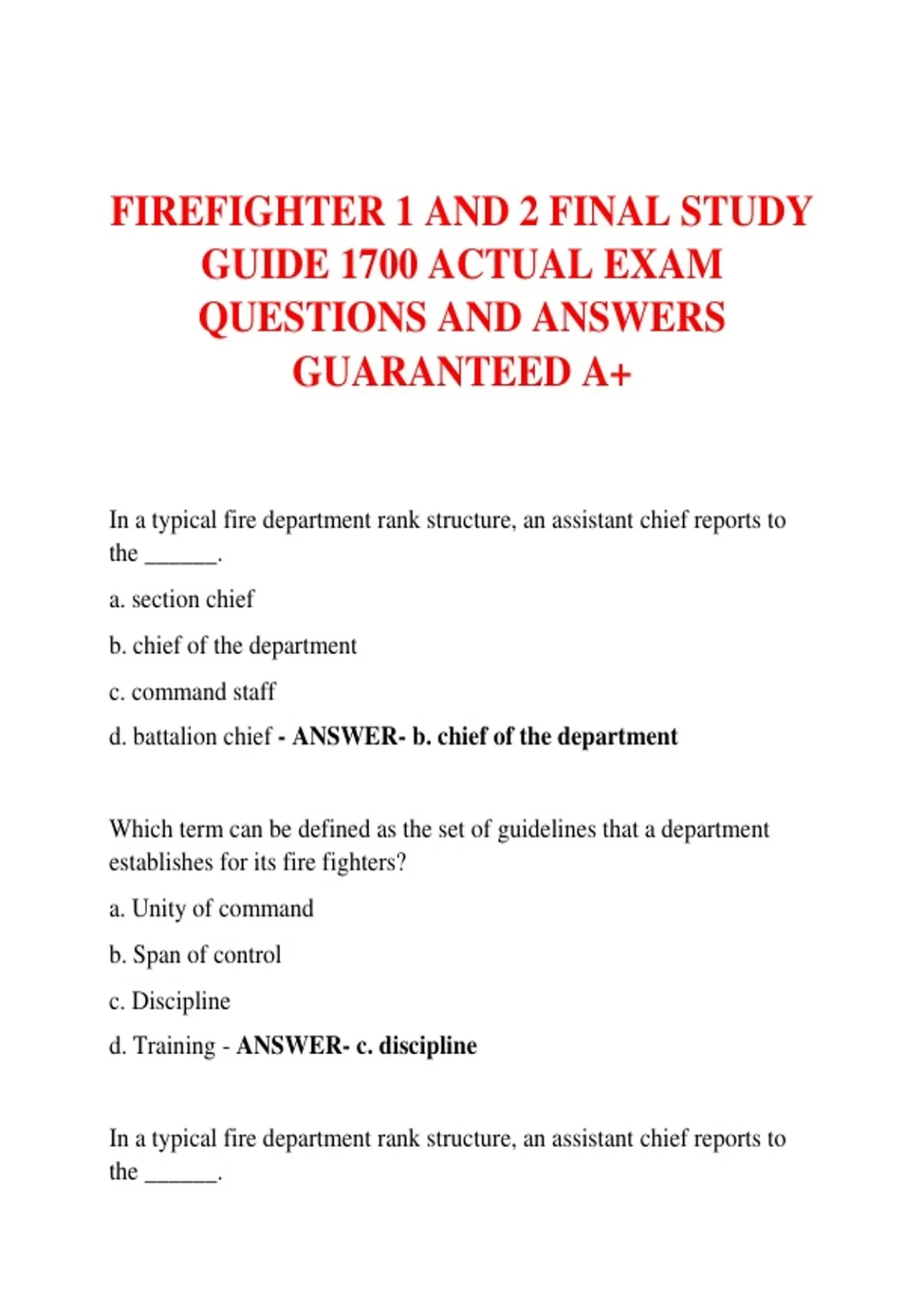 FIREFIGHTER 1 AND 2 FINAL STUDY GUIDE 1700 ACTUAL EXAM QUESTIONS AND ANSWERS GUARANTEED A+