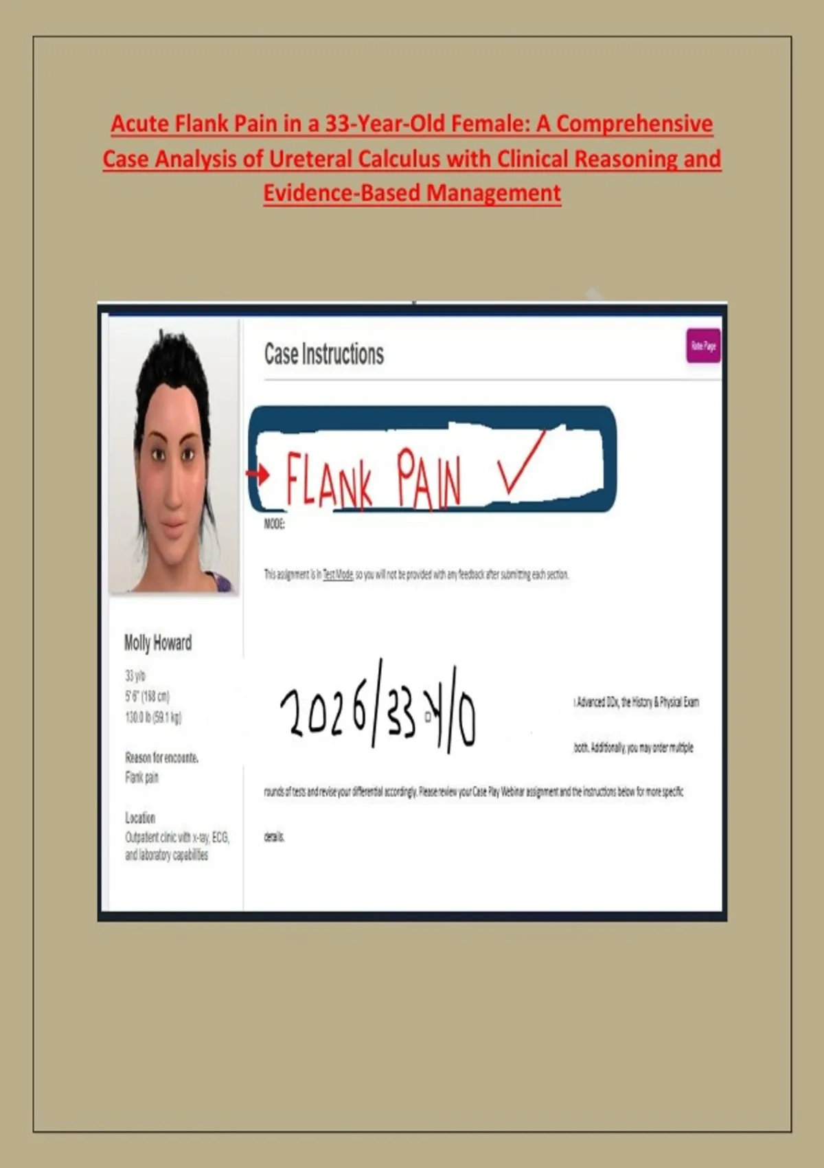 COMPREHENSIVE CASE STUDY : Molly Howard – 33-Year-Old Female with Acute Flank Pain: Diagnostic and Therapeutic Management of Symptomatic Nephrolithiasis – Full Clinical Workup with Imaging Correlation, Pharmacological Intervention, and Prevention Planning