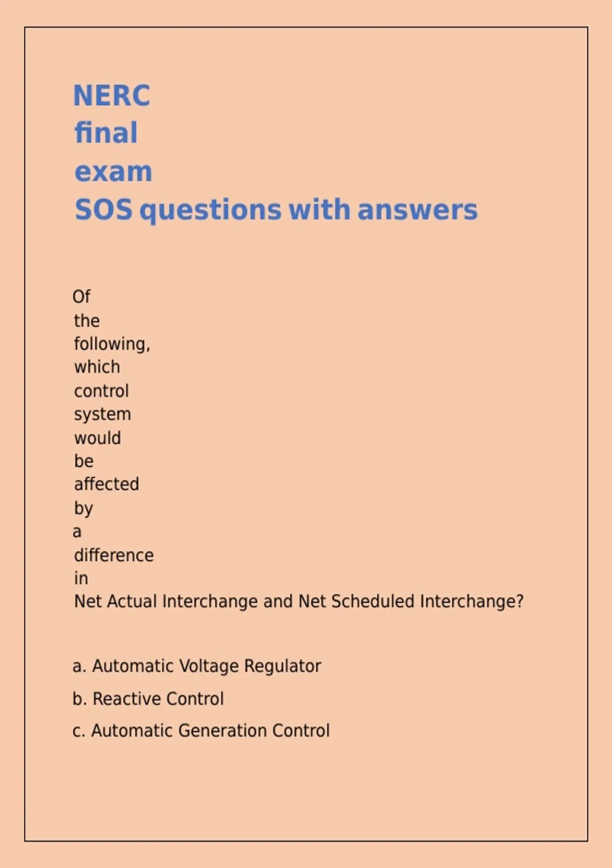 NERC RC Exam Questions With Answers