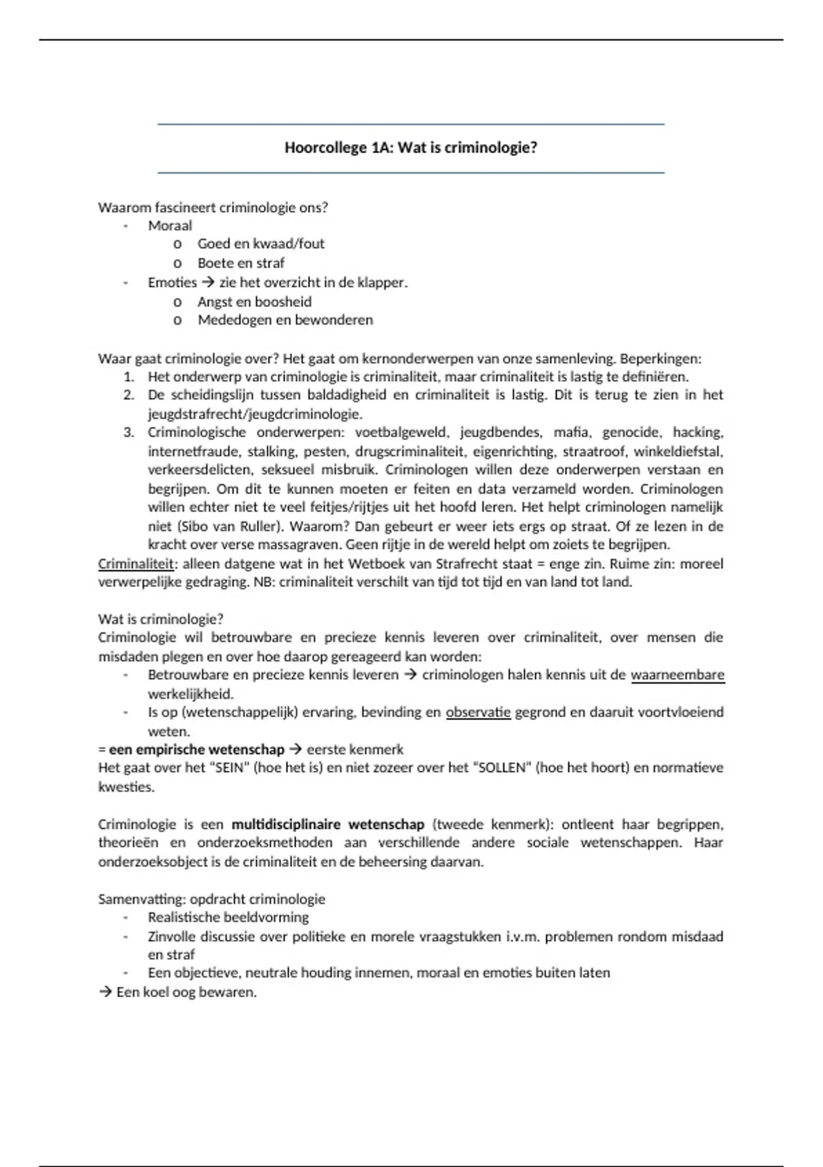 Inleiding Criminologie en Materieel Strafrecht