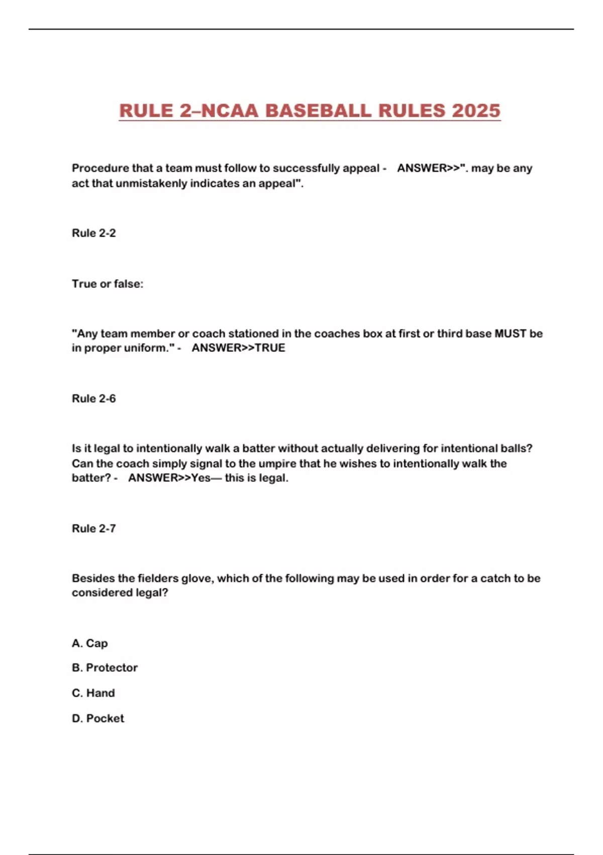 RULE 2–NCAA BASEBALL RULES 2025