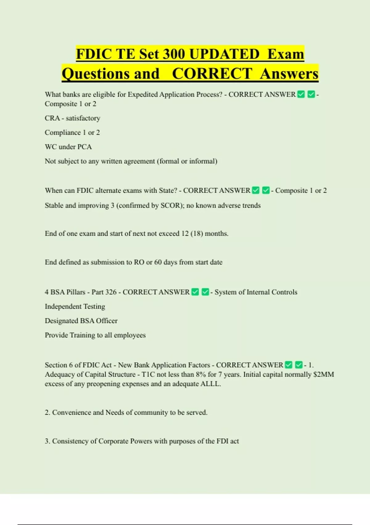 FDIC TE Set 300 UPDATED Exam Questions and CORRECT Answers