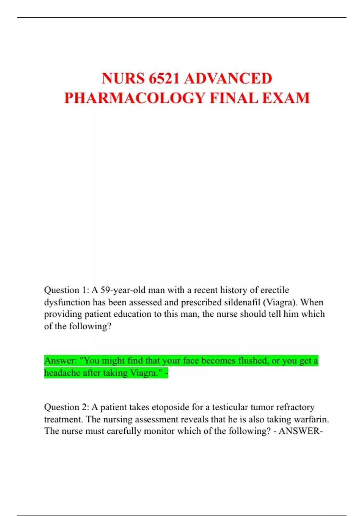 NURS 6521 ADVANCED PHARMACOLOGY FINAL EXAM