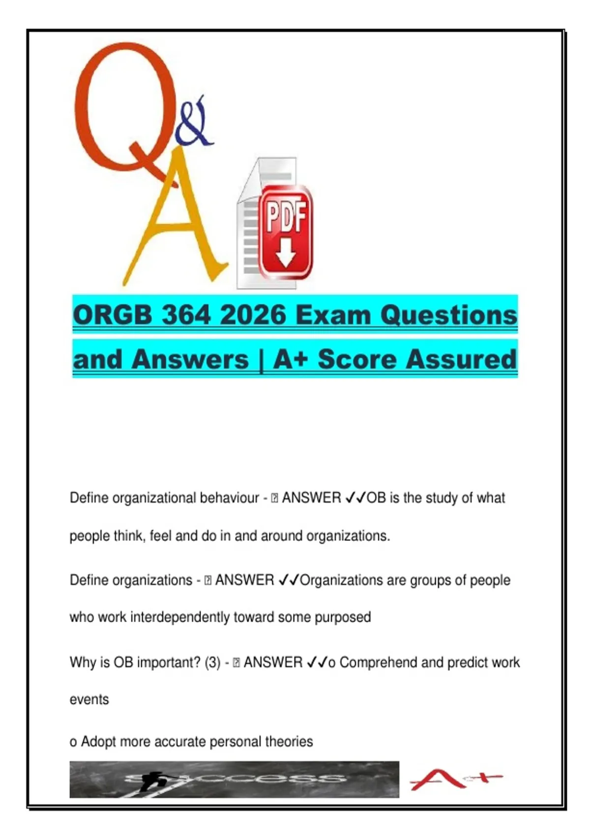 ORGB 364 2026 Exam Questions and Answers – 400 Questions on Organizational Behaviour, Motivation, Decision Making & Job Design