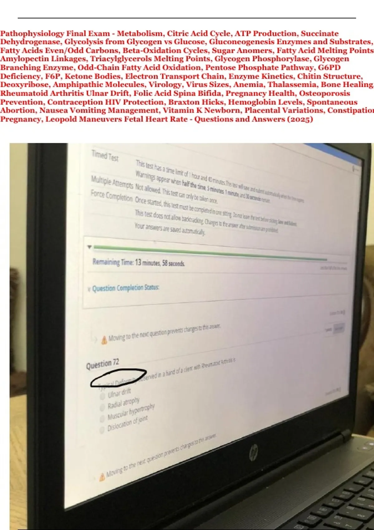 Pathophysiology Final Exam Solved - Metabolism, Citric Acid Cycle, ATP Production, Oxaloacetate, Succinate Dehydrogenase, Substrate-Level Phosphorylation, Glycolysis from Glycogen vs Glucose, Net ATP Yield, Gluconeogenesis Unique Reactions, Enzymes and
