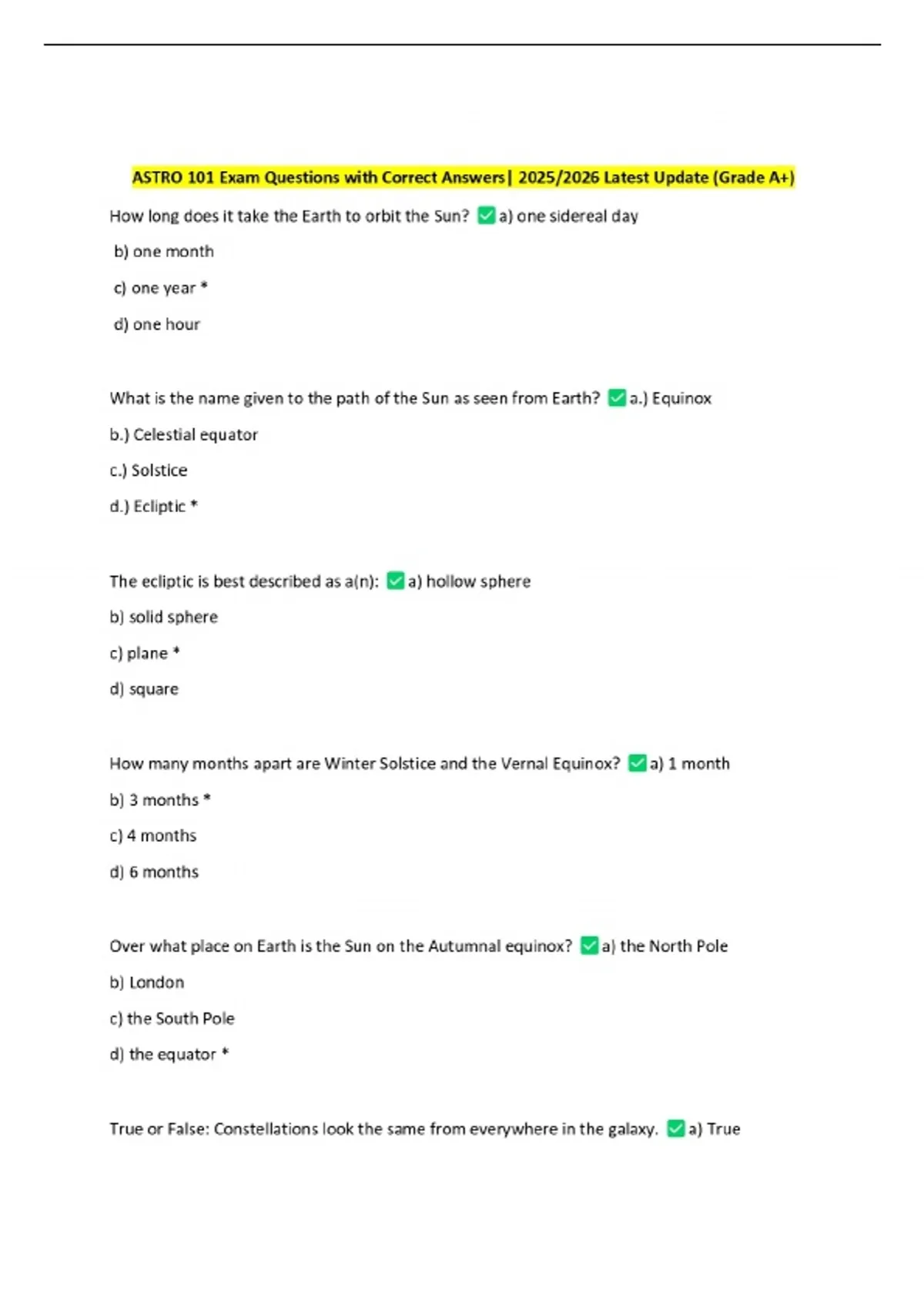 Exam (elaborations) ASTRO 101 Exam Questions with Correct Answers| 2025/2026 Latest Update 3 Exam (elaborations) Astro 101 Final Exam Questions with Correct Answers| 2025/2026 Latest Update 4 Exam (elaborations) ASTRO 101 Exam Questions with Correct Answers| 2025/2026 Latest Update 5 Exam (elaborations) ASTRO 101 Exam Questions with Correct Answer