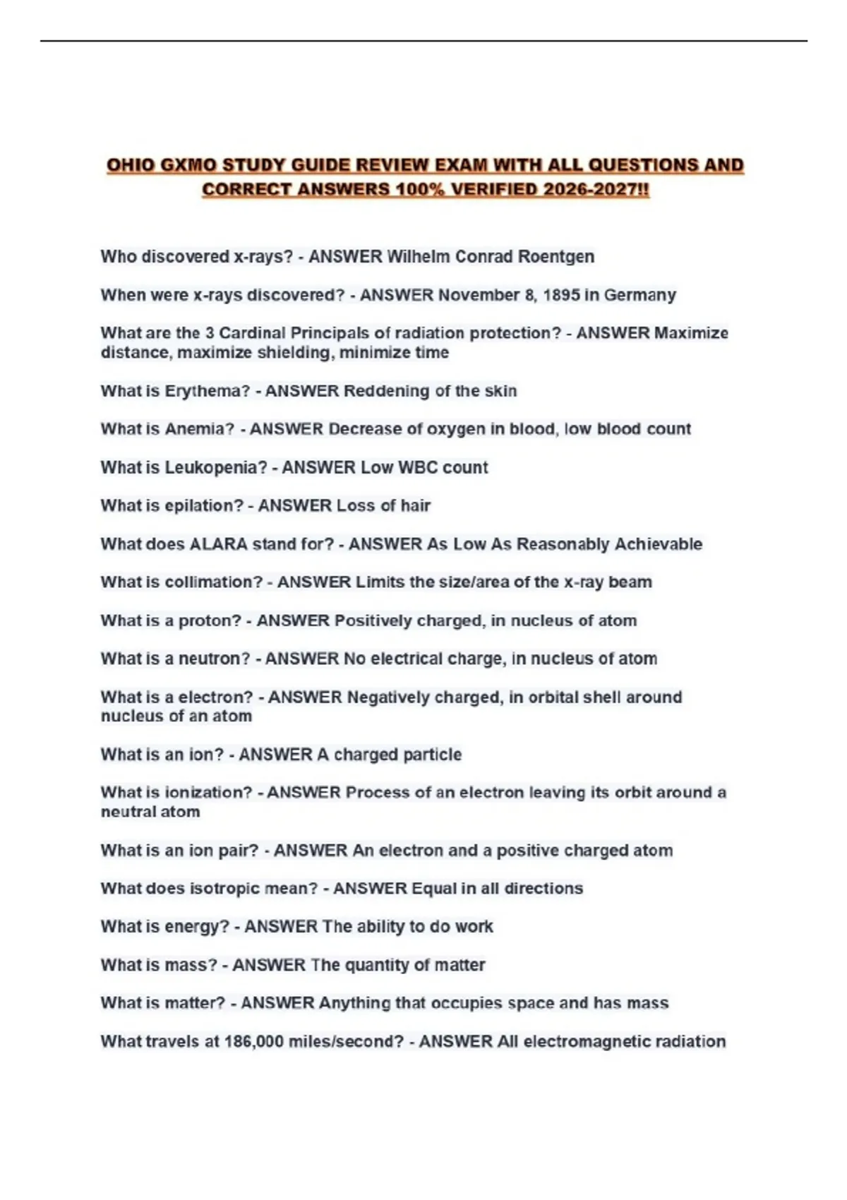 OHIO GXMO STUDY GUIDE REVIEW EXAM WITH ALL QUESTIONS AND CORRECT ANSWERS 100% VERIFIED !!