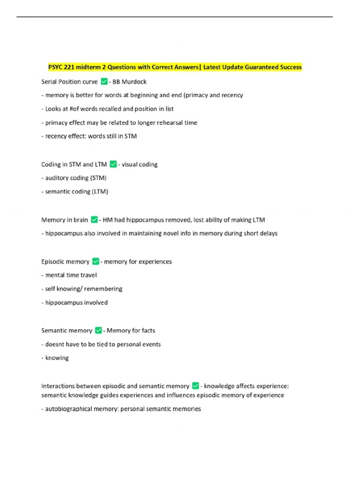 PSYC 221 midterm 2 Questions with Correct Answers| Latest Update 2 Exam (elaborations) PSYC 221 Ch 1 Test Bank Questions with Correct Answers| Latest Update 3 Exam (elaborations) PSYC 221 Chapter 6 Test Bank Questions with Correct Answers| Latest Update 4 Exam (elaborations) PSYCH 221 (Exam 1) Questions with Correct Answers| Latest Update