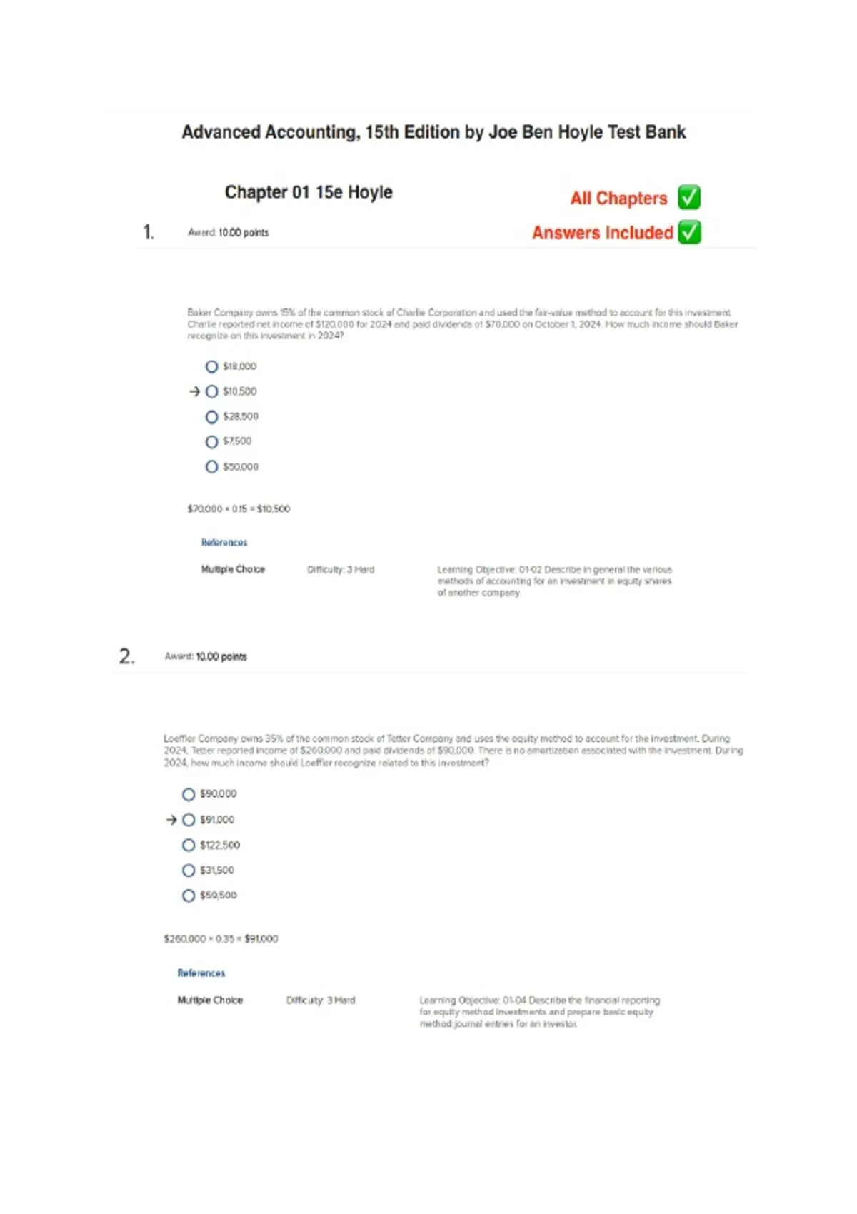 Test Bank Advanced Accounting, 15th Edition by Joe Ben Hoyle | All Chapters | Comprehensive Practice Questions & Verified Answers 2026/2027