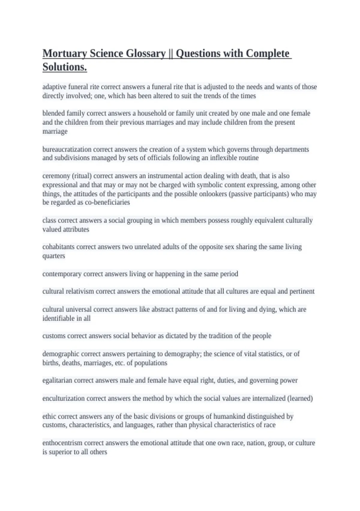 Pittsburgh Institute of Mortuary Science Comp Study Guide || Questions Answered with Absolute Accuracy; A+ Guaranteed. Mortuary Science Professional Review Funeral Service Management Terms || Questions & Answers; Rated 100% Correct. Mortuary Science Practice Test: Funeral Service Merchandising || Exam-Style Questions with 100% Correct Answers.