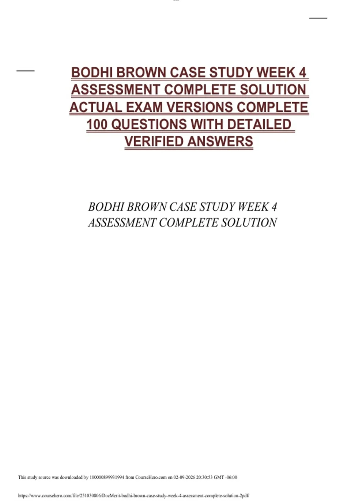 Bodhi Brown Case Study Week 4 Assessment | Complete Solution with 100 Questions and Detailed Verified Answers