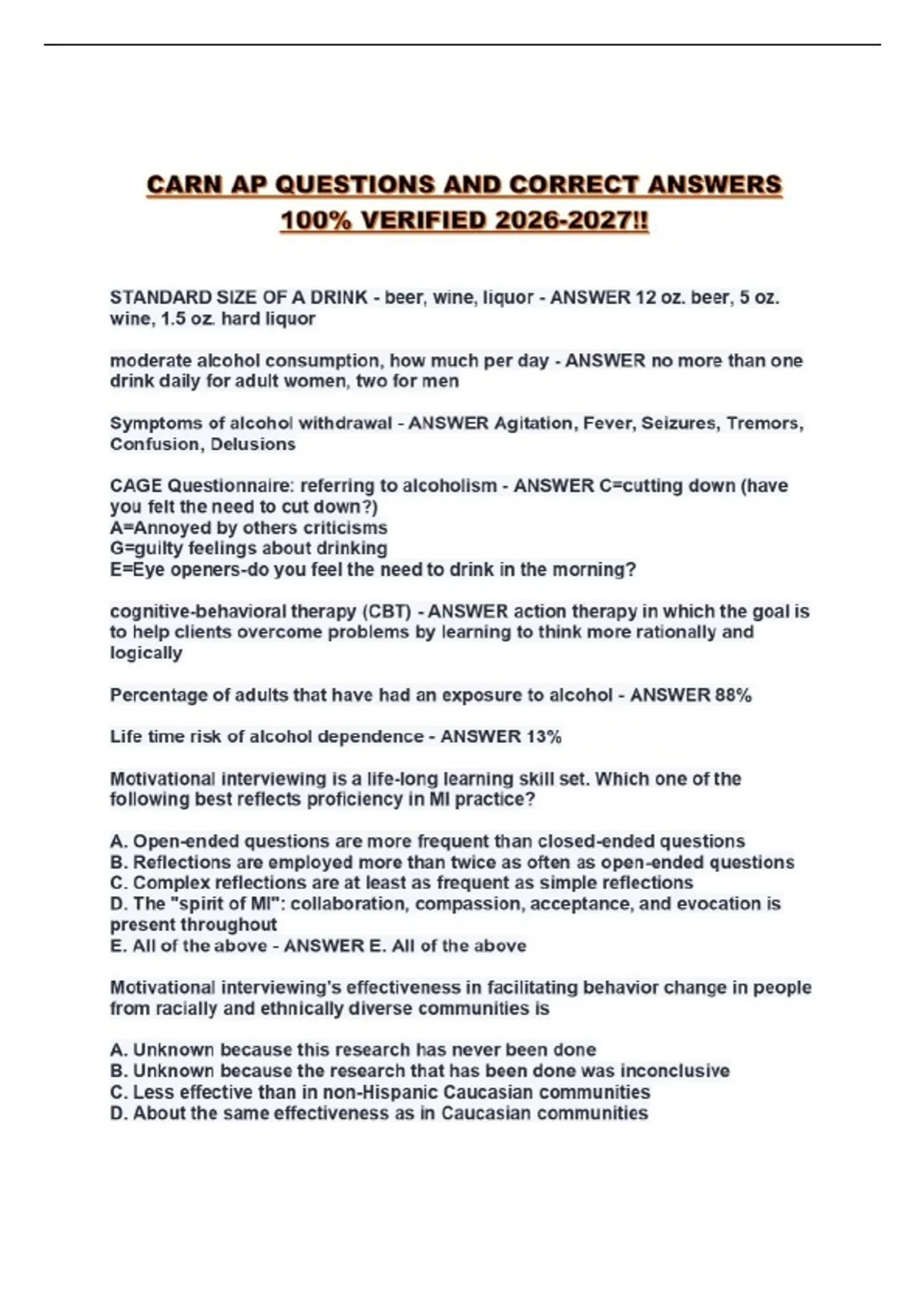 CARN AP QUESTIONS AND CORRECT ANSWERS 100% VERIFIED !!