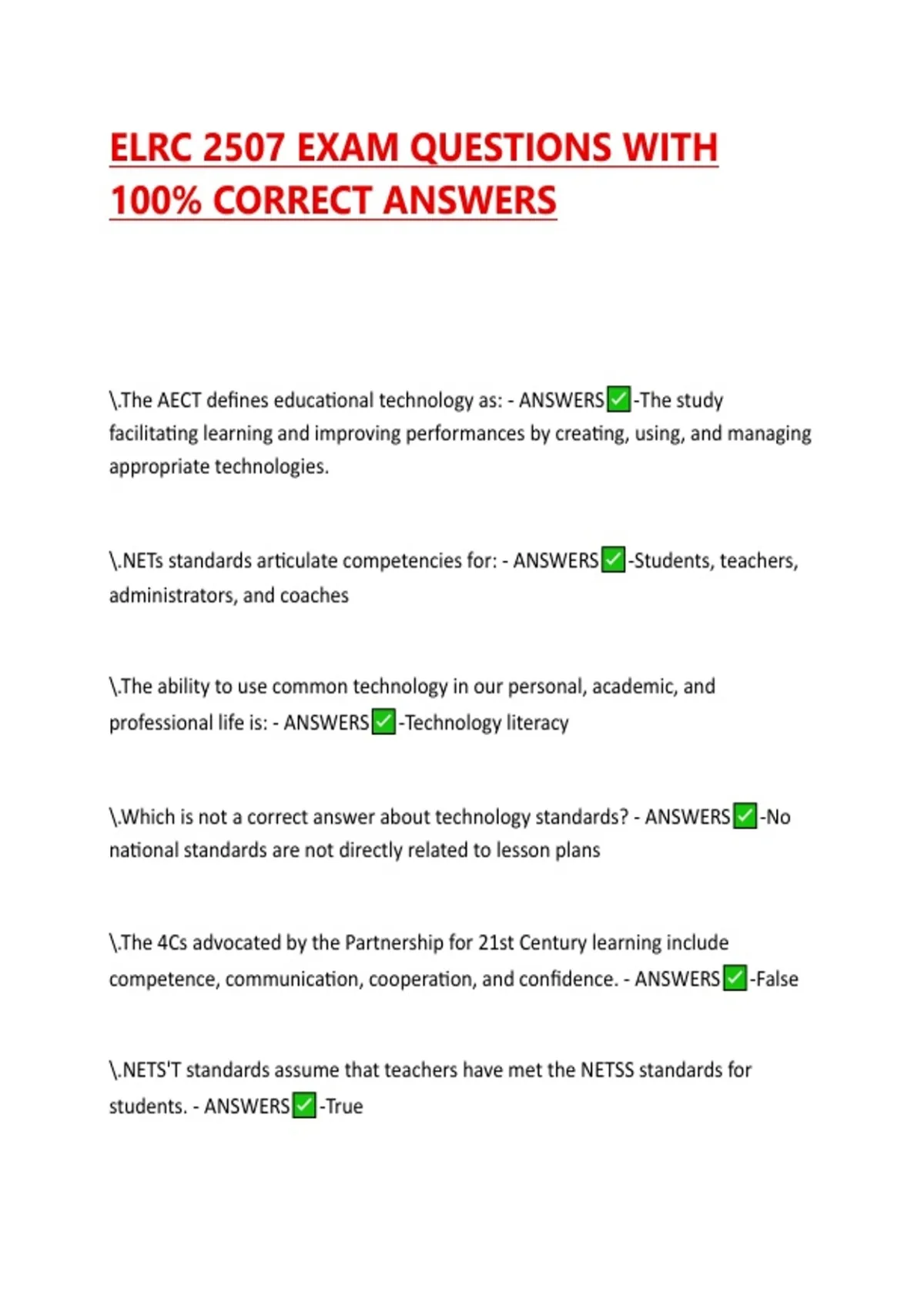 ELRC 2507 EXAMS BUNDLE