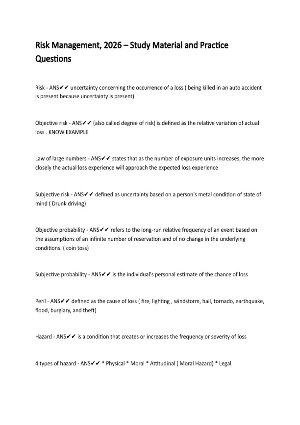 Risk Management, 2026 – Study Material and Practice Questions