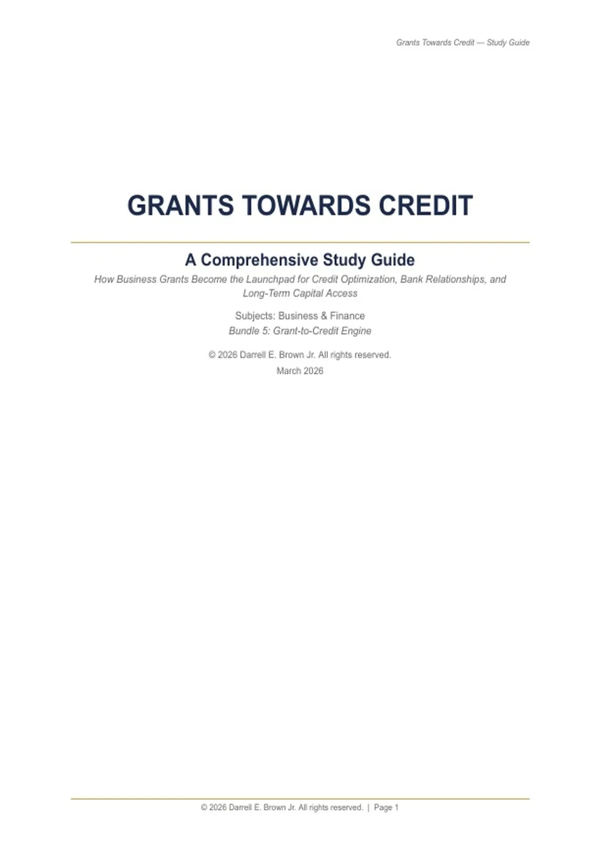An 8-module course with 32 lessons and 64 learning objectives covering the complete grant-to-credit strategy. From entity formation through grant acquisition, bank relationships, credit optimization, and portfolio scaling. Includes case studies, practical exercises, and assessment rubrics. • 10 tab spreadsheet with 101 built-in formulas