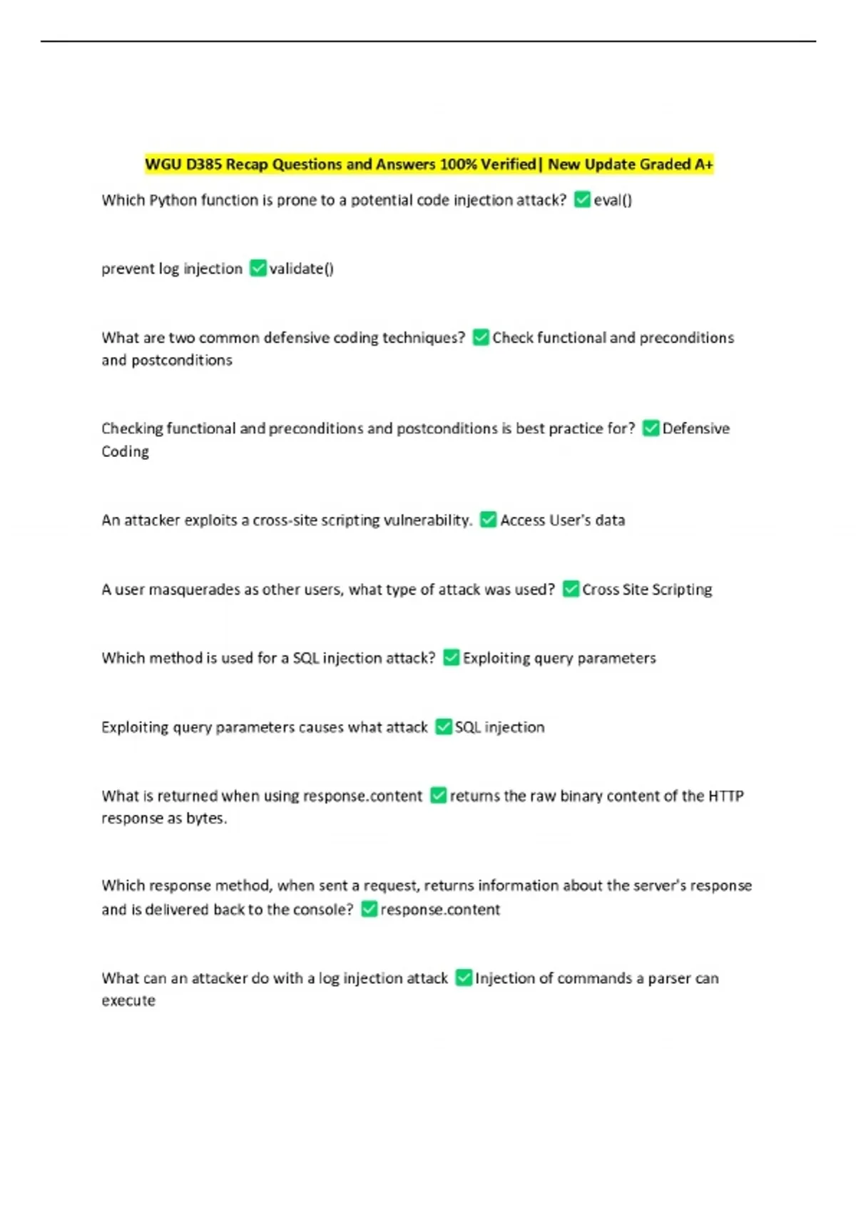 WGU D385 Software Security and Testing - Questions and Answers 100% Verified| New Update Graded A+ 3 Exam (elaborations) WGU D385 - Software Security and Testing Questions and Answers 100% Verified| New Update Graded A+ 4 Exam (elaborations) WGU D385 Exam Questions and Answers 100% Verified| New Update Graded A+ 5 Exam (elaborations) WGU D385 OA