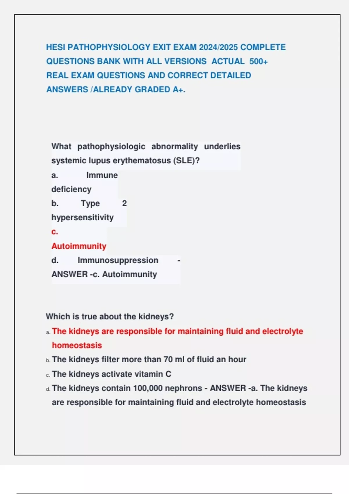 HESI PATHOPHYSIOLOGY EXIT EXAM 2024/2025 HESI PATHOPHYSIOLOGY PRACTICE EXAM ACTUAL COMPLETE 150 REAL EXAM QUESTIONS AND CORRECT ELABORATED ANSWERS Hesi Pathophysiology Practice Exam || Most Recent Exam Actual Complete Real Exam Questions And Correct Answers (Verified Answers) Already Graded A+ | GuaranteedSuccess!! Newest Exam