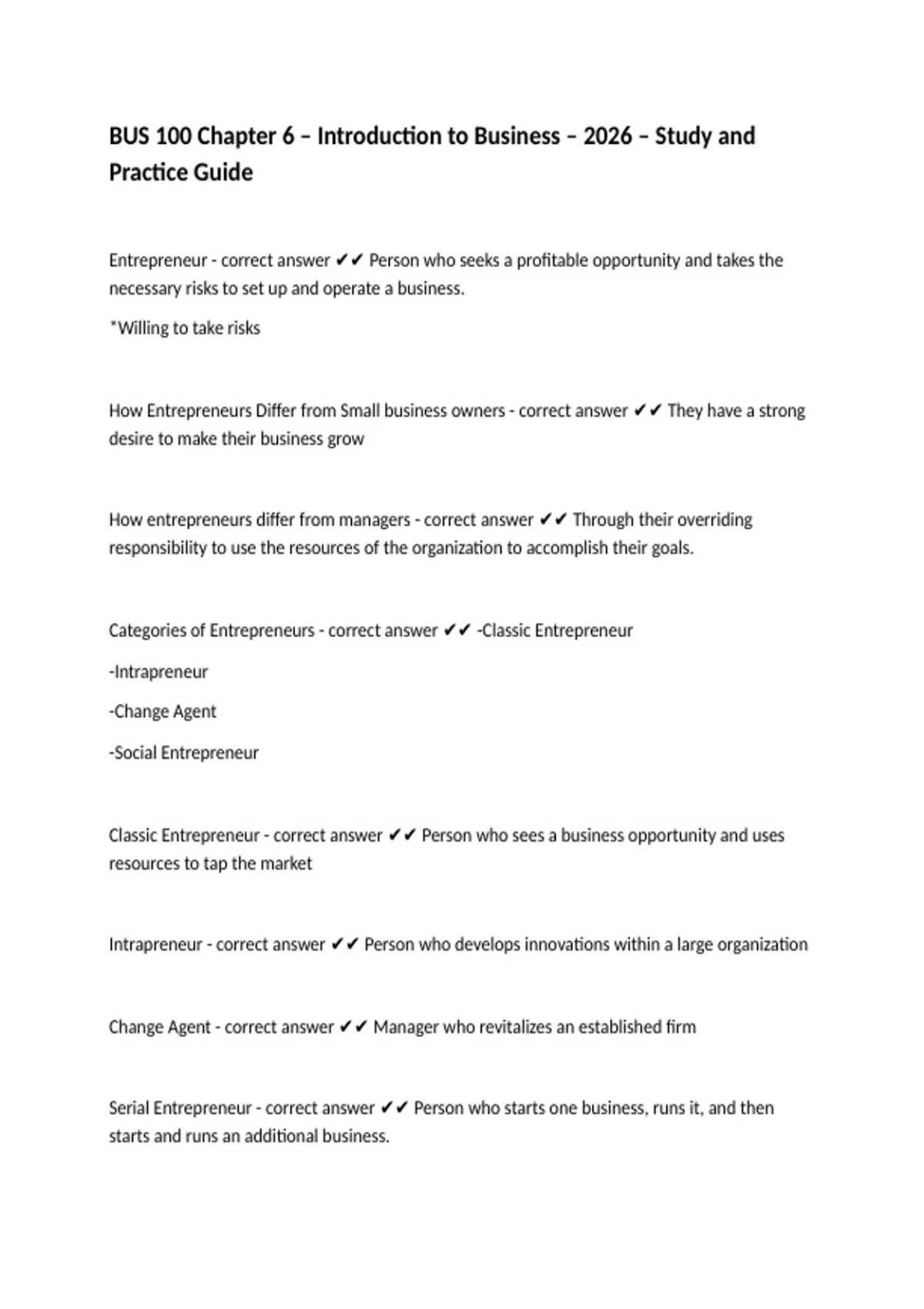 1 Exam (elaborations) BUS 100 Exam – Chapters 1–4 – Introduction to Business – 2026 – Study and Practice Guide 2 Exam (elaborations) BUS 100 – Multiple Choice Practice – Introduction to Business – 2026 – Study and Practice Guide 3 Exam (elaborations) BUS 100 Exam #1 – Chapters 1–5 – Introduction to Business – 2026 – Study and Practice Guide 4 Ex