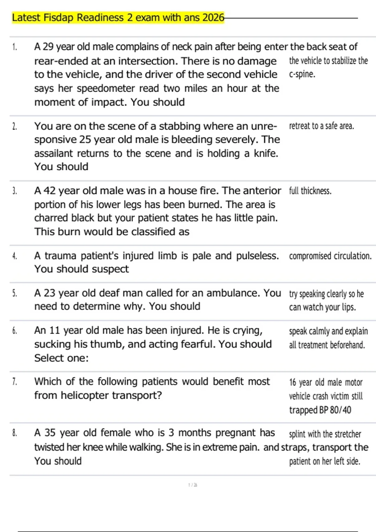 ,Latest Fisdap Readiness 2 exam with ans 2026