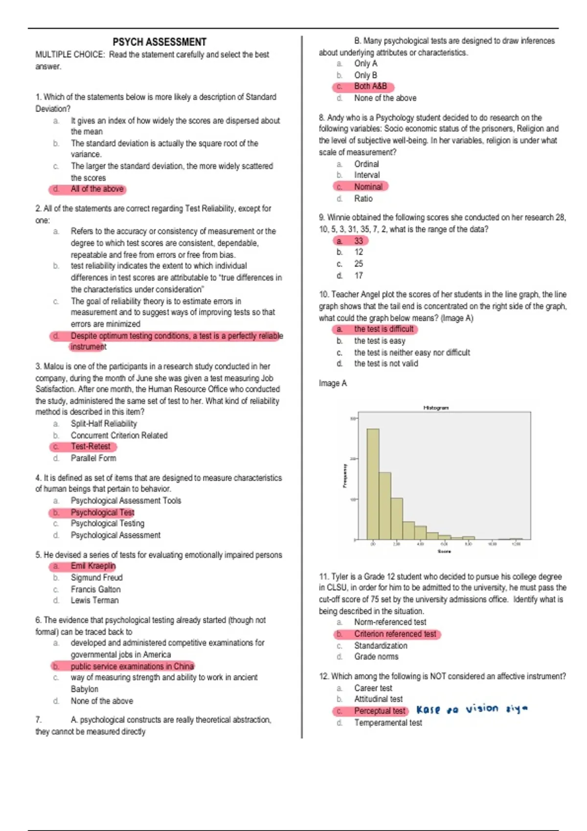 6. The evidence that psychological testing already started (though not a. Norm-referenced test