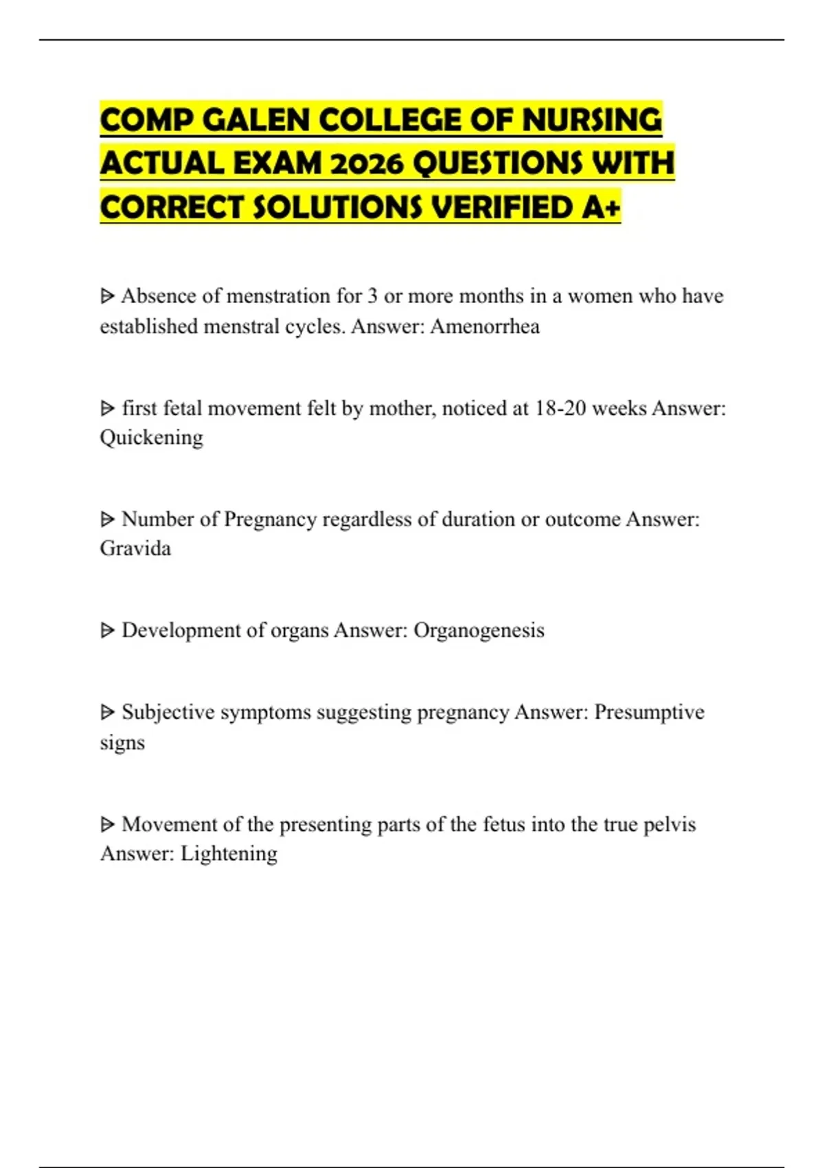 ⩥ Subjective symptoms suggesting pregnancy Answer: Presumptive