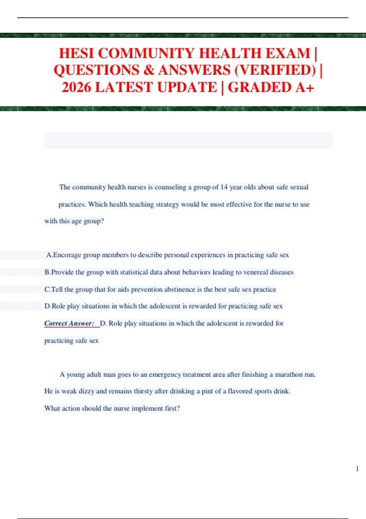 HESI COMMUNITY HEALTH EXAM | QUESTIONS & ANSWERS (VERIFIED) | 2026 LATEST UPDATE | GRADED A+