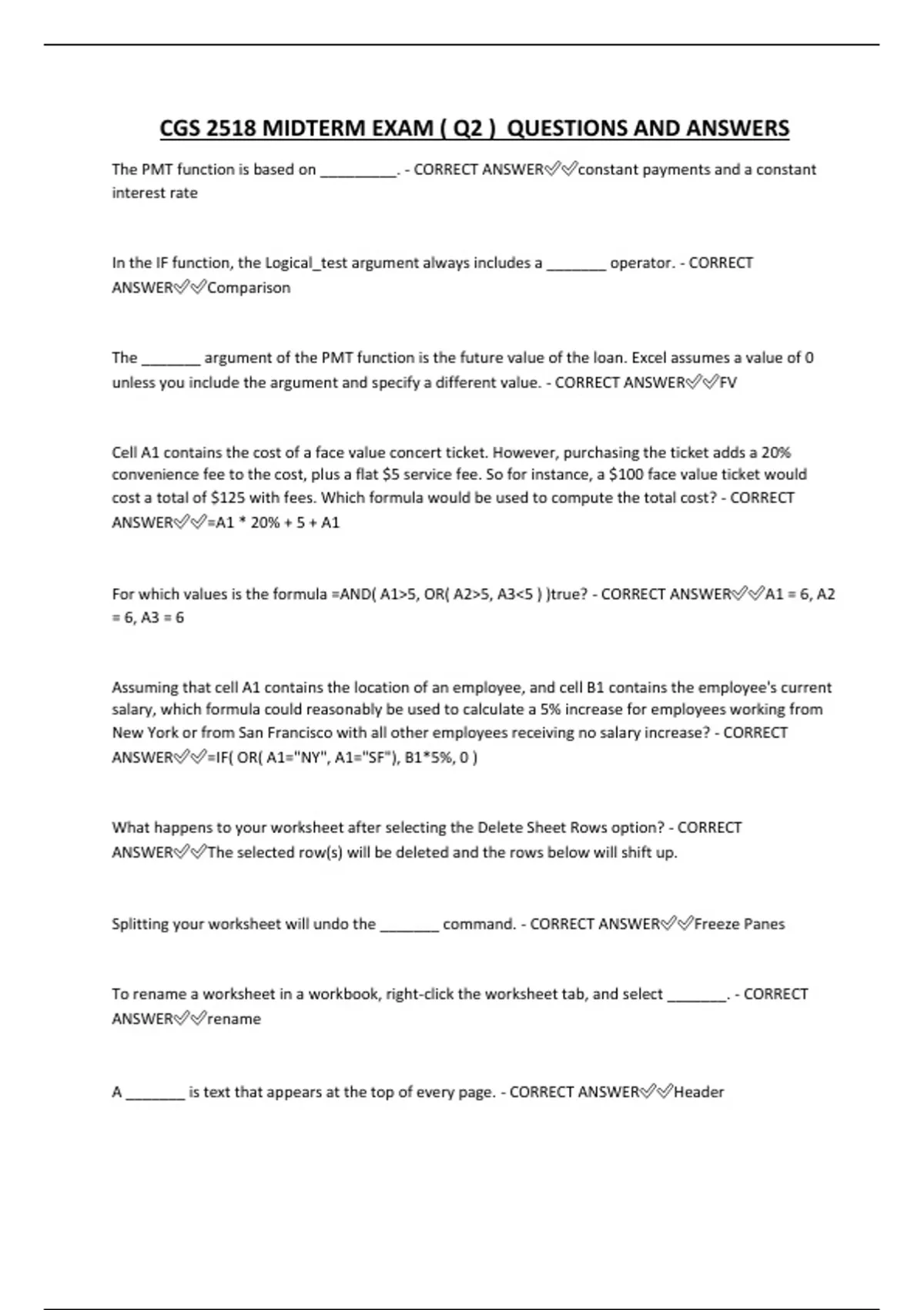 CGS 2518 MIDTERM EXAM ( Q2 ) QUESTIONS AND ANSWERS