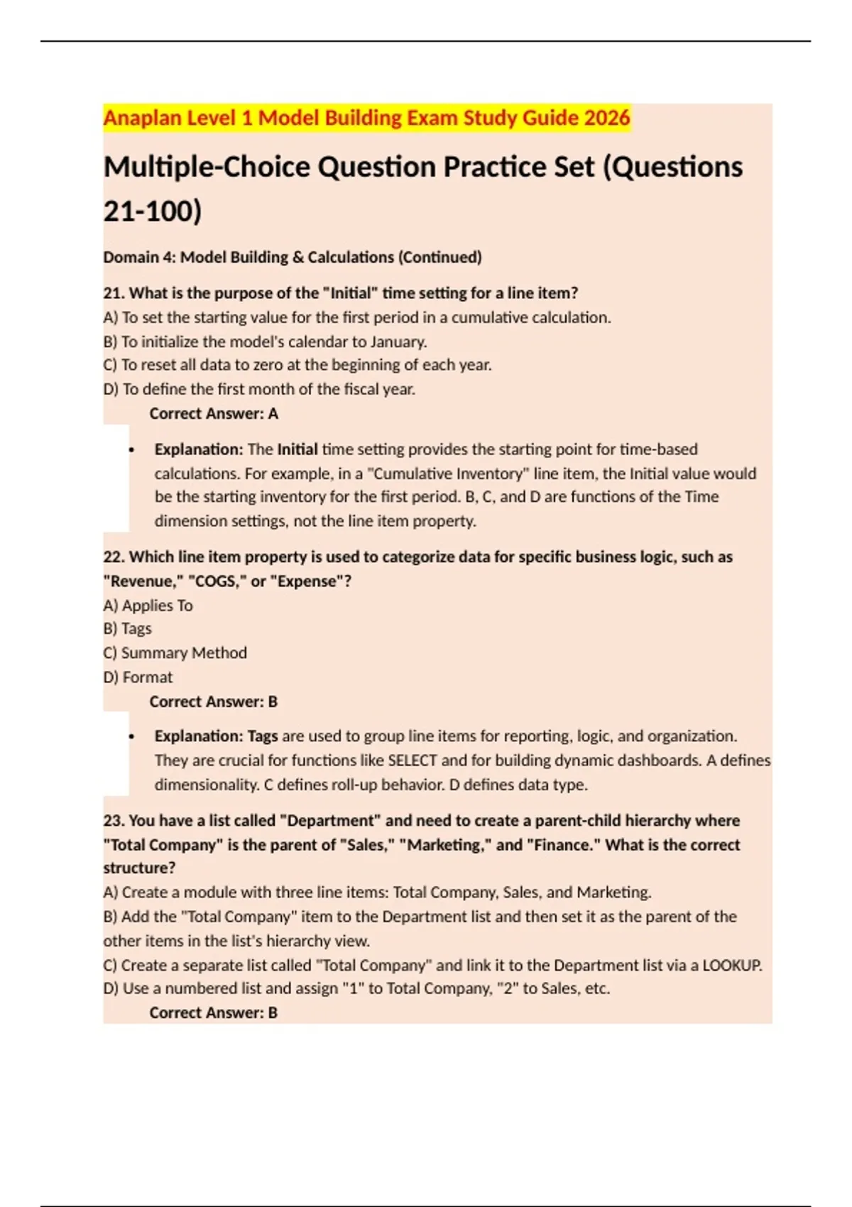 Anaplan Level 1 Model Building Exam Study Guide 2026