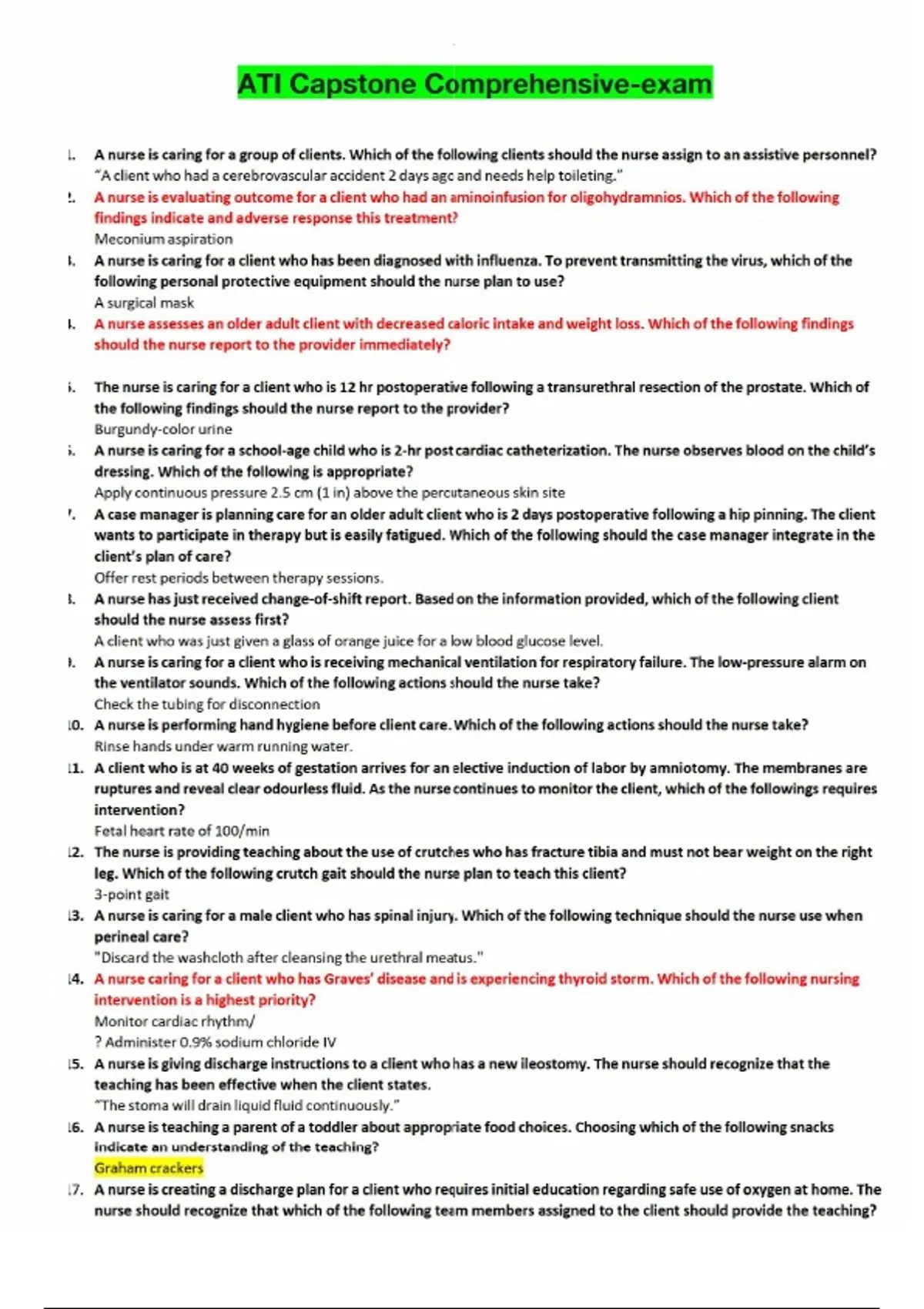 ATI Capstone Comprehensive Exam Questions and Answers.
