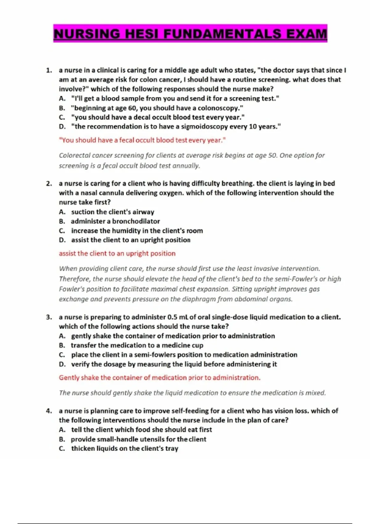 NURSING HESI FUNDAMENTALS EXAM QUESTIONS WITH VERIFIED SOLUTIONS.NURSING HESI FUNDAMENTALS EXAM QUESTIONS WITH VERIFIED SOLUTIONS.