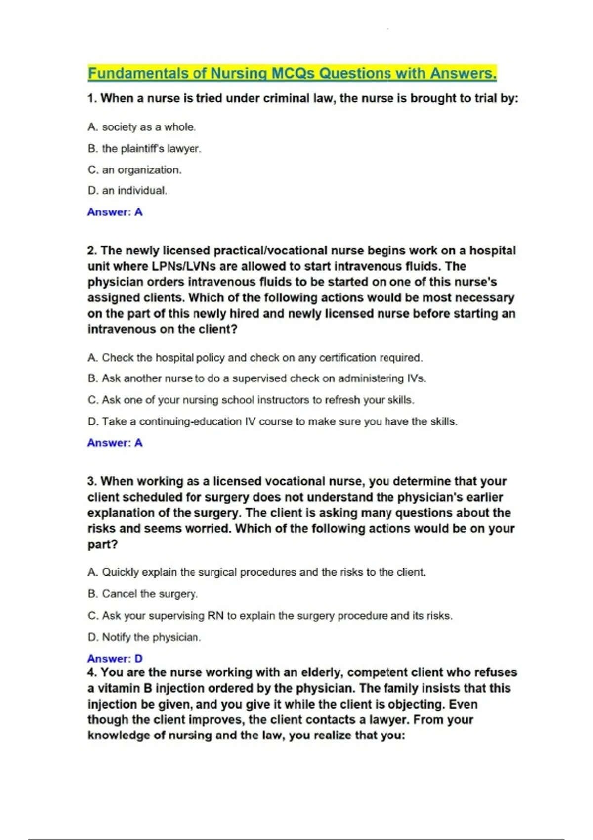 Fundamentals of Nursing MCQs Questions with Answers.Fundamentals of Nursing MCQs Questions with Answers.