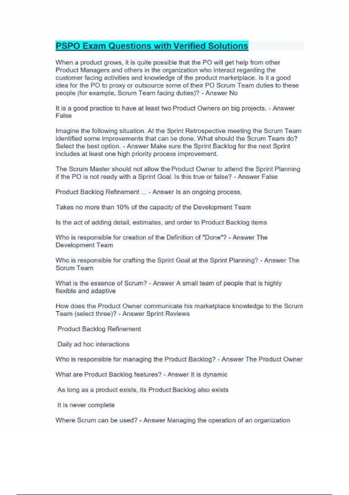 PSPO Exam Questions with Verified SolutionsPSPO Exam Questions with Verified Solutions