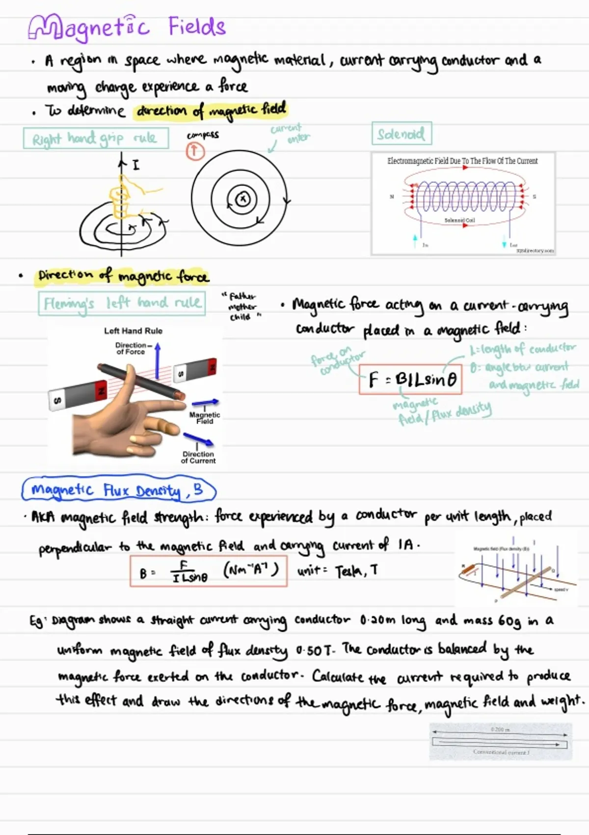 CAIE (International) A2 notes on Physics: Magnetic Field. Includes practices with some answers. A good summary notes to go through the entire of Electric Field in A2. Copied diagrams included are not mine, everything else hand-illustrated belongs to me. This note is used for my tutoring classes. Recommended to use appropriately with Edexcel/CIE.