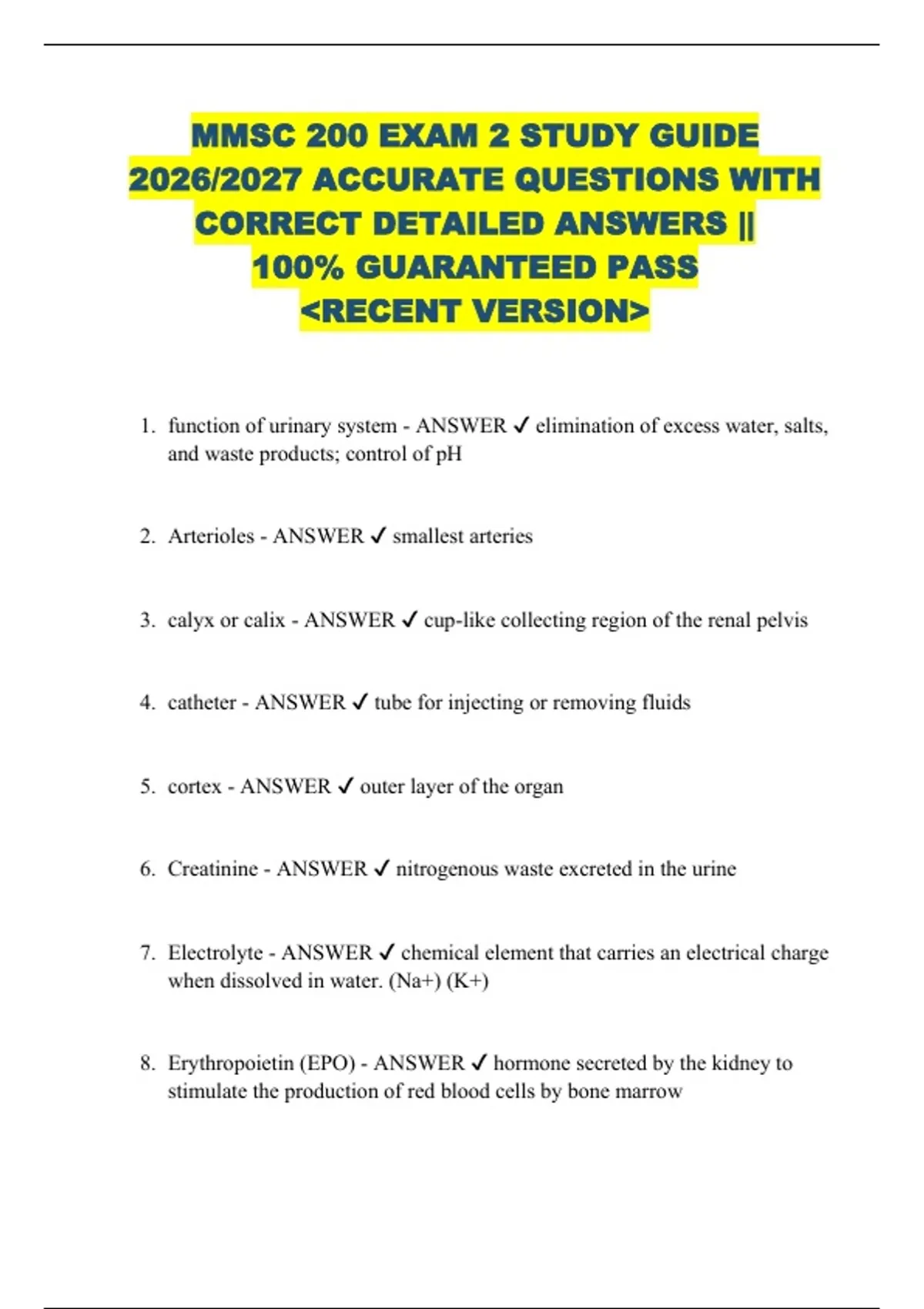 29.What filters blood? - ANSWER ✔ Glomerulus, this occurs by the blood