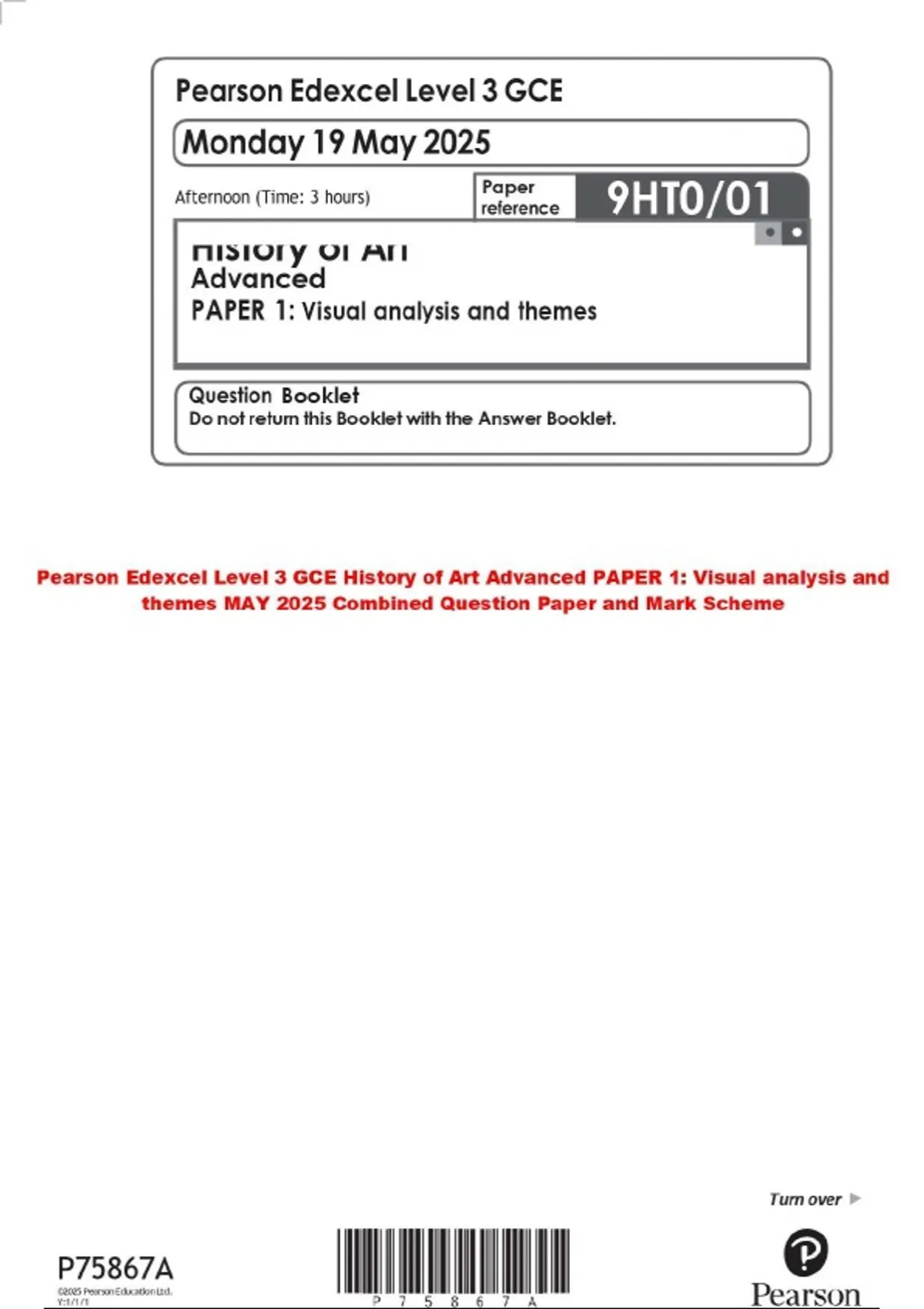Pearson Edexcel Level 3 GCE History of Art Advanced PAPER 1: Visual analysis and themes MAY 2025 Combined Question Paper and Mark Scheme