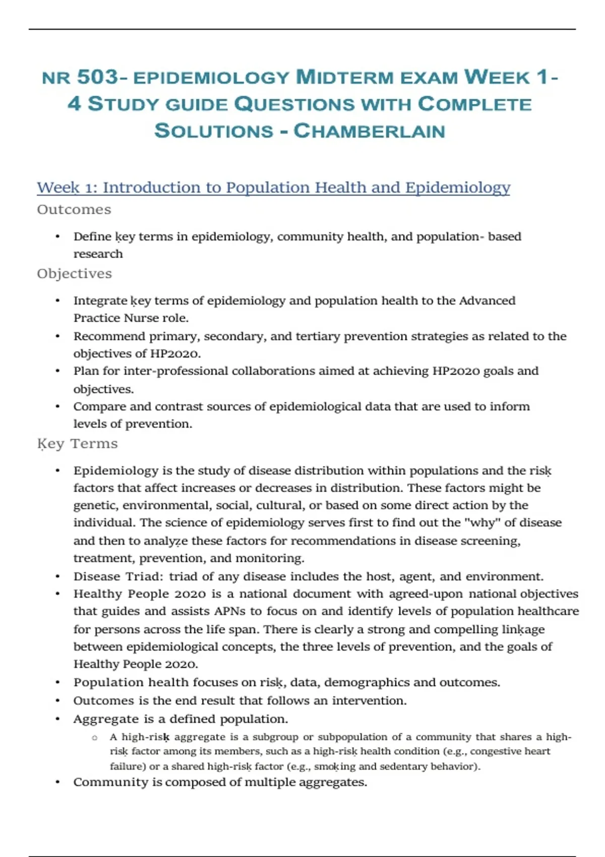 • Integrate ḳey terms of epidemiology and population health to the Advanced