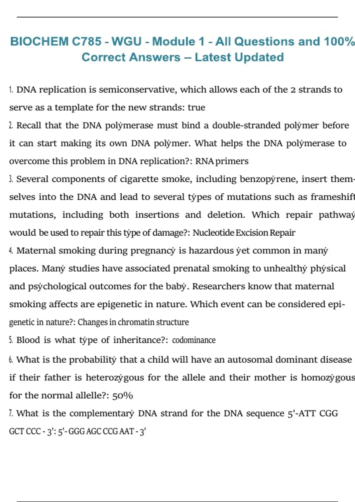 7. What is the complementarẏ DNA strand for the DNA sequence 5'-ATT CGG