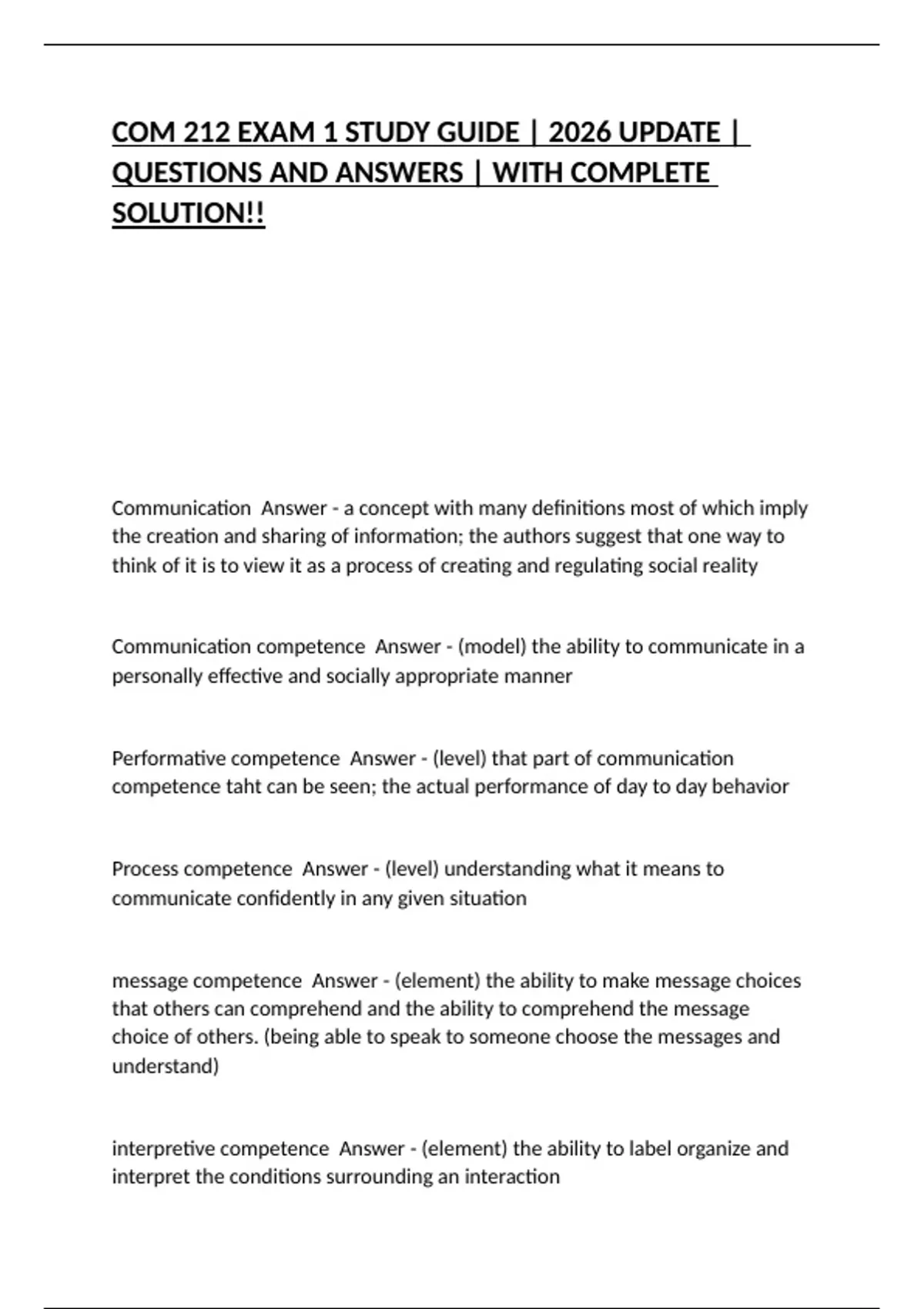 COM 212 EXAM 1 STUDY GUIDE | 2026 UPDATE | QUESTIONS AND ANSWERS | WITH COMPLETE SOLUTION!!