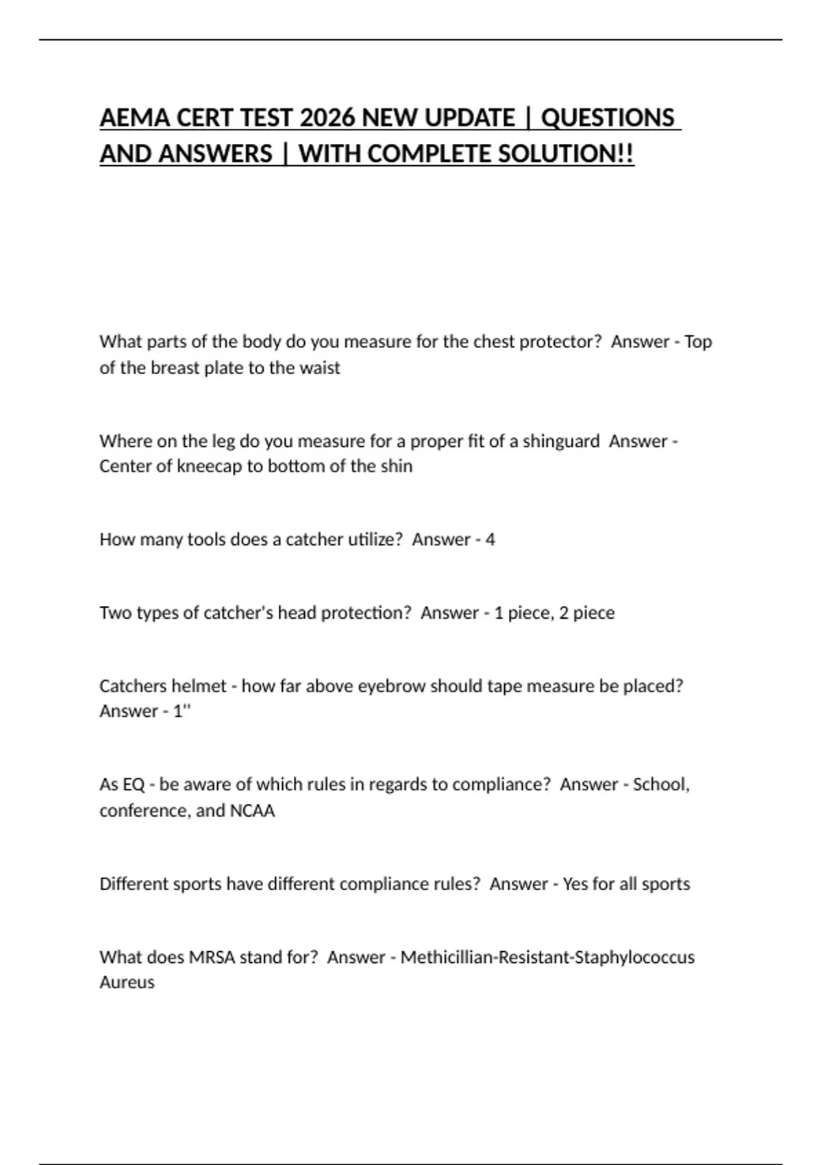 AEMA CERT TEST 2026 NEW UPDATE | QUESTIONS AND ANSWERS | WITH COMPLETE SOLUTION!!