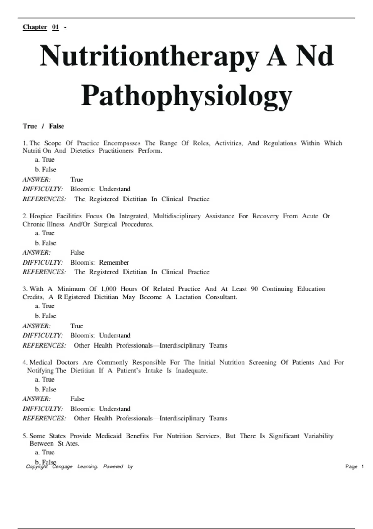 Test Bank for Nutrition Therapy and Pathophysiology 4th Edition by Marcia Nelms and Kathryn P. Sucher| 978-0357041710| All Chapters 1-25|LATEST |2025