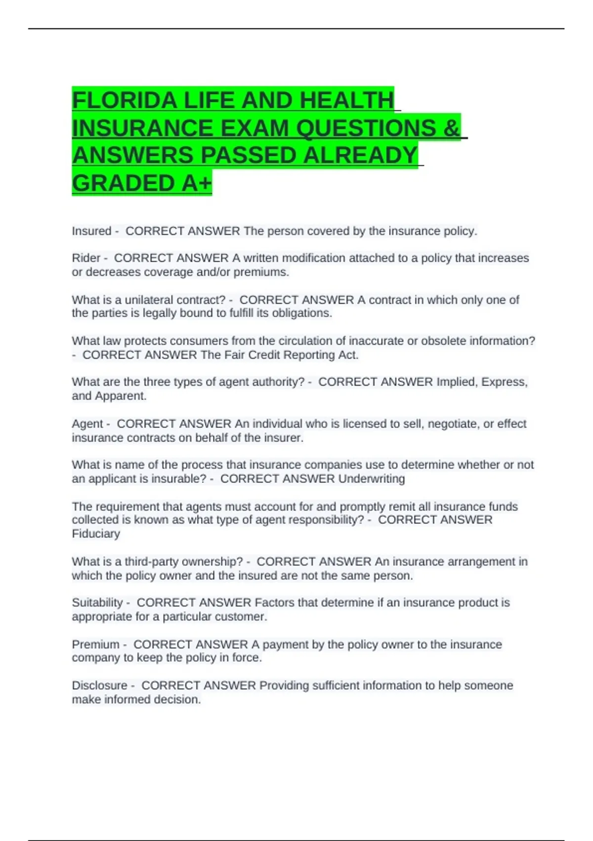 , What is underwriting? - CORRECT ANSWER The risk selection and classification