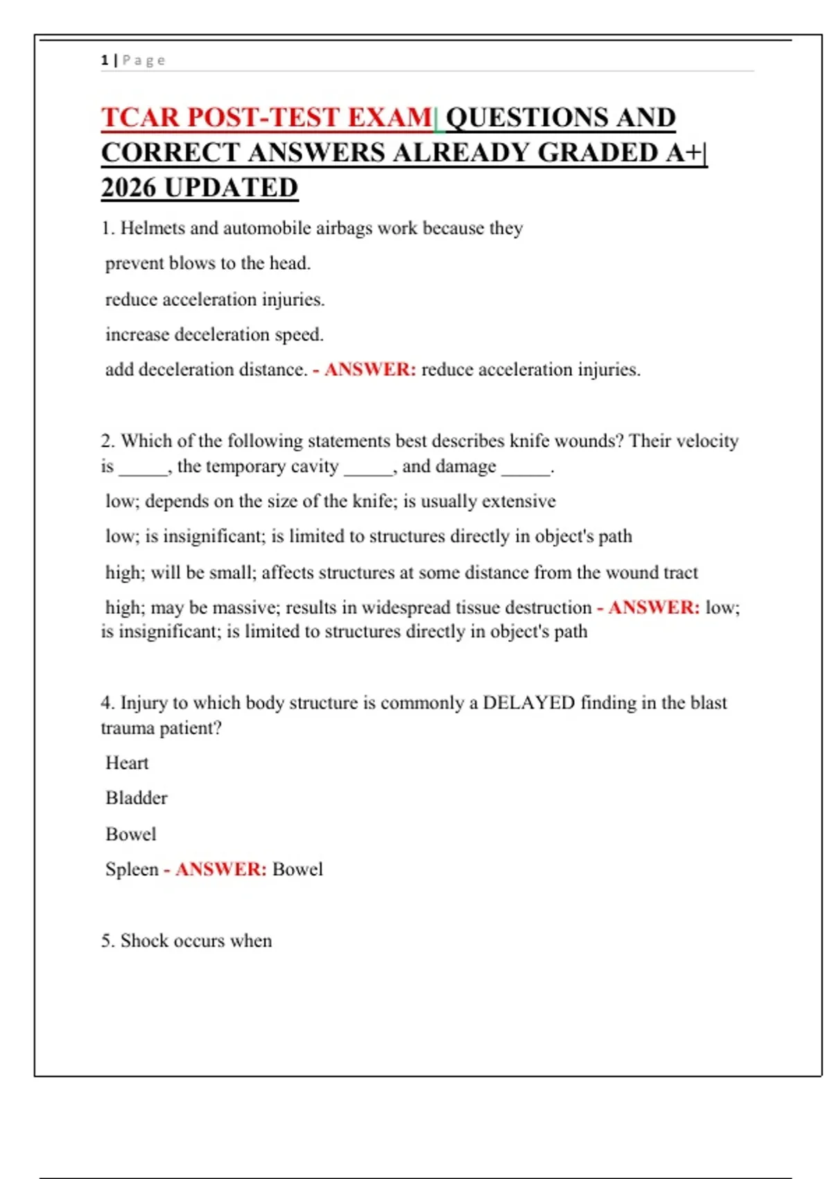 TCAR POST-TEST EXAM| QUESTIONS AND
