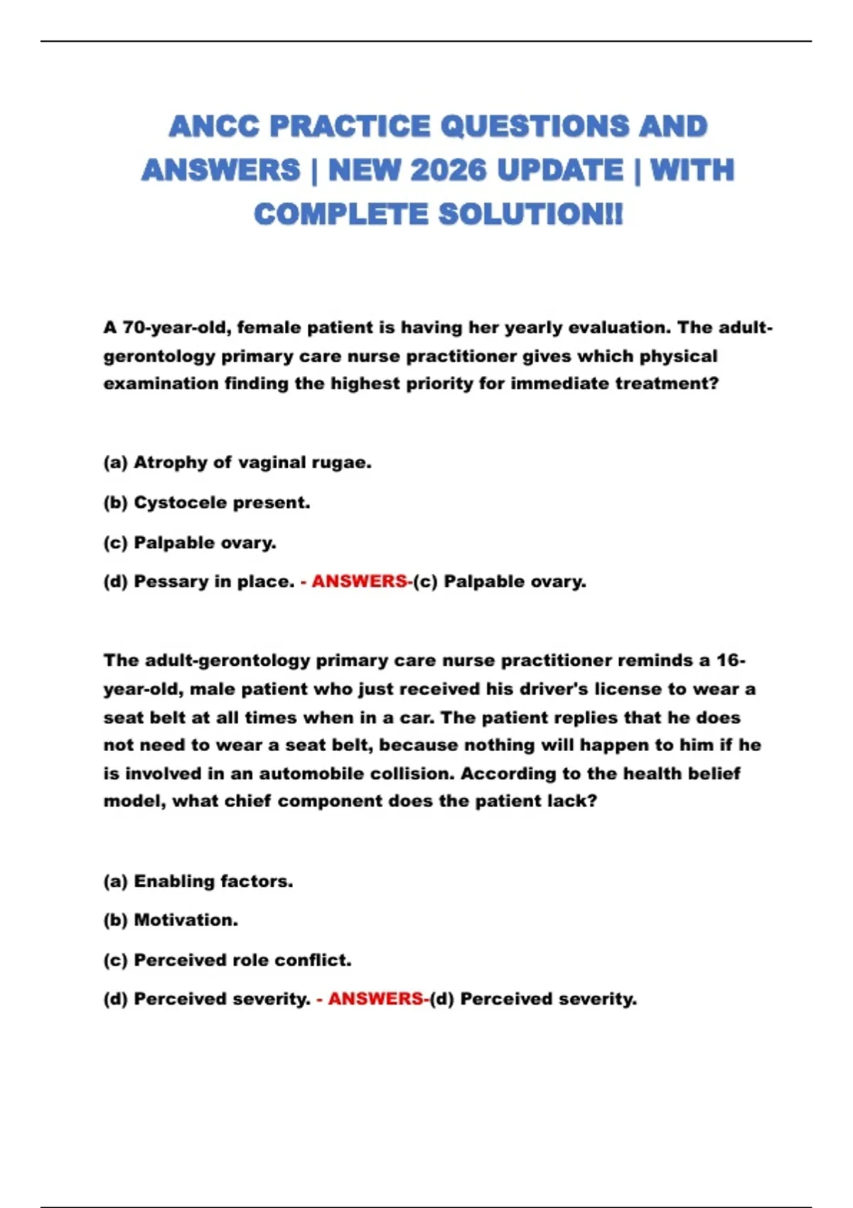 ANCC PRACTICE QUESTIONS AND ANSWERS | NEW 2026 UPDATE | WITH COMPLETE SOLUTION!!